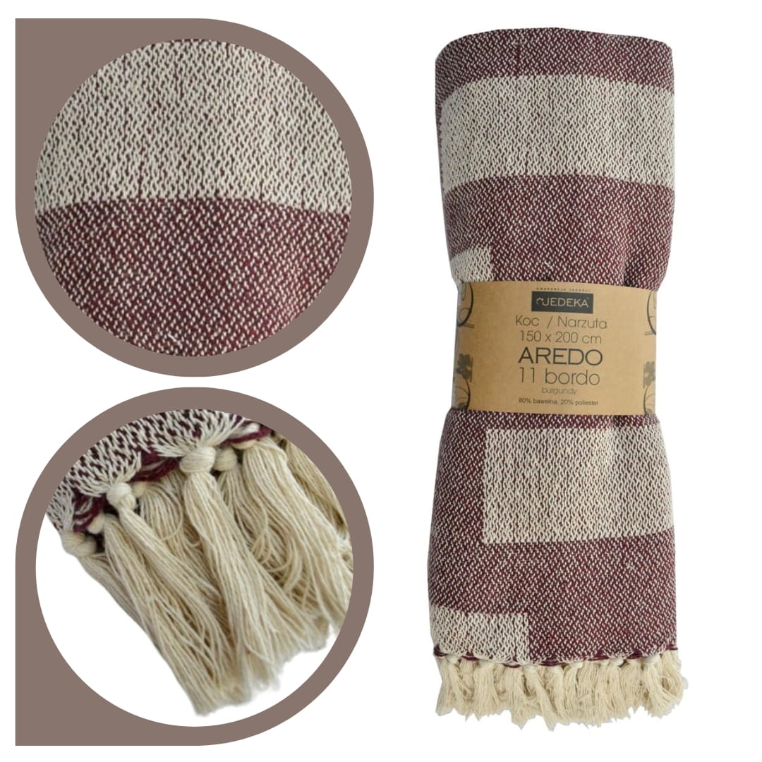 Bawełniany Koc Narzuta 150x200 AREDO 11 BORDO
