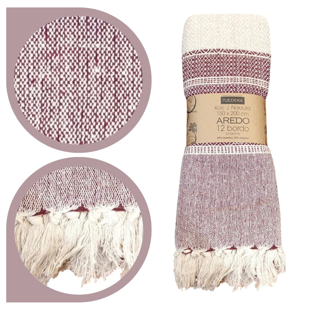 Bawełniany Koc Narzuta 150x200 AREDO 12 BORDO