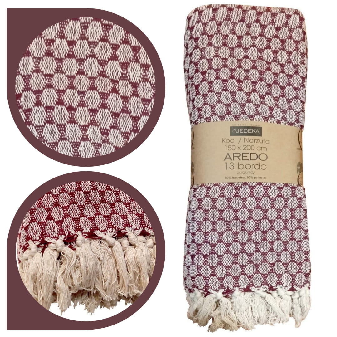 Bawełniany Koc Narzuta 150x200 AREDO 13 BORDO