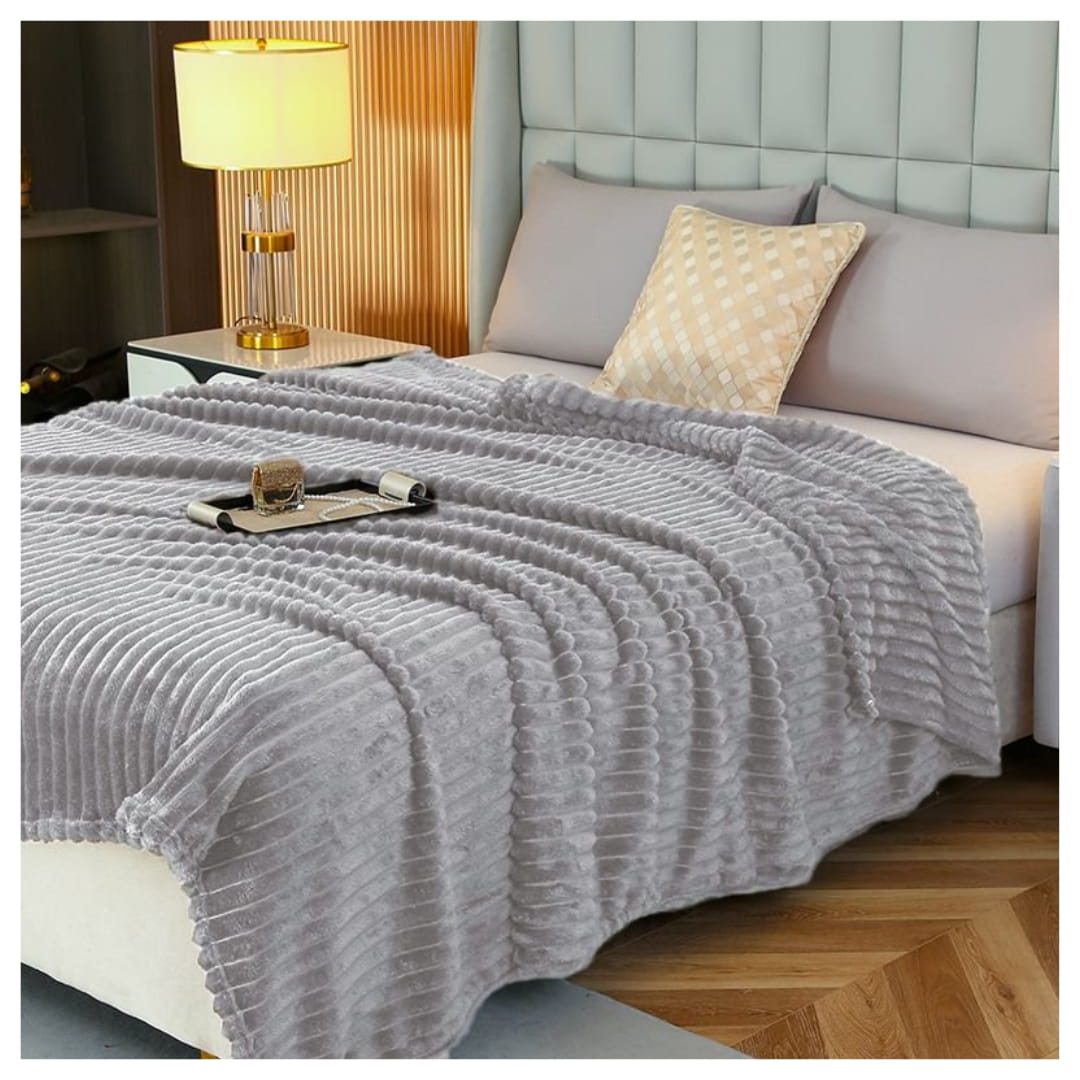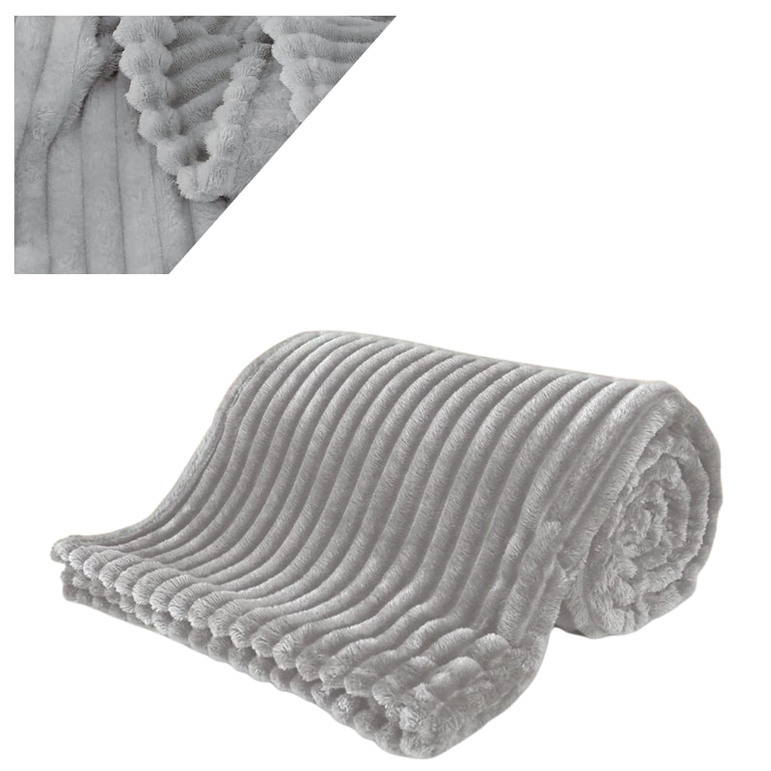 Koc Narzuta 200x220 Mikrofibra Tłoczony Jasny Popiel