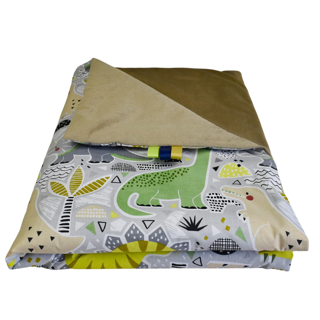 Kocyk Dziecięcy 75x100 Ocieplany Dinozaury/Beż Bawełna/Velvet