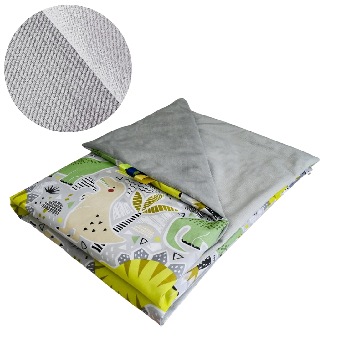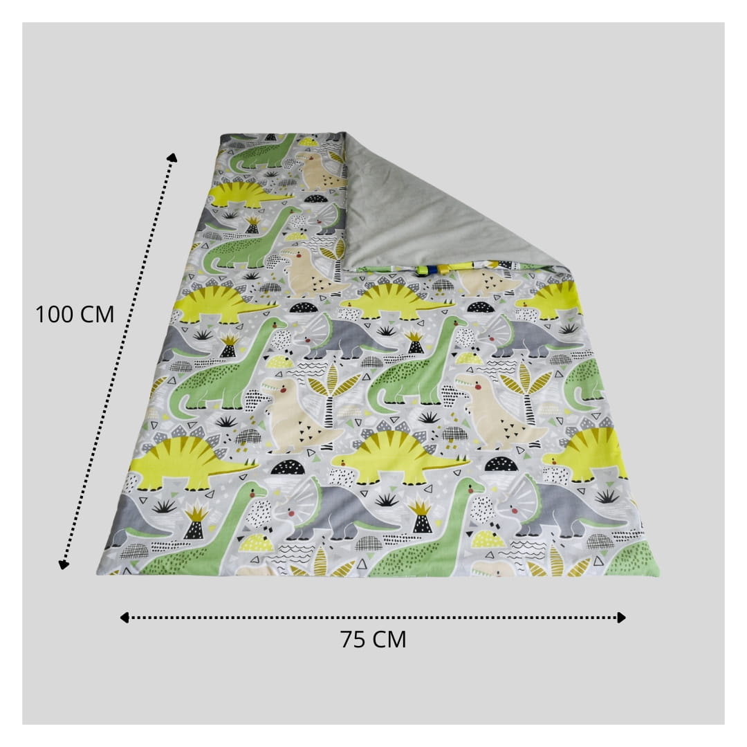 Kocyk Dziecięcy 75x100 Ocieplany Dinozaury/Szary Bawełna/Velvet