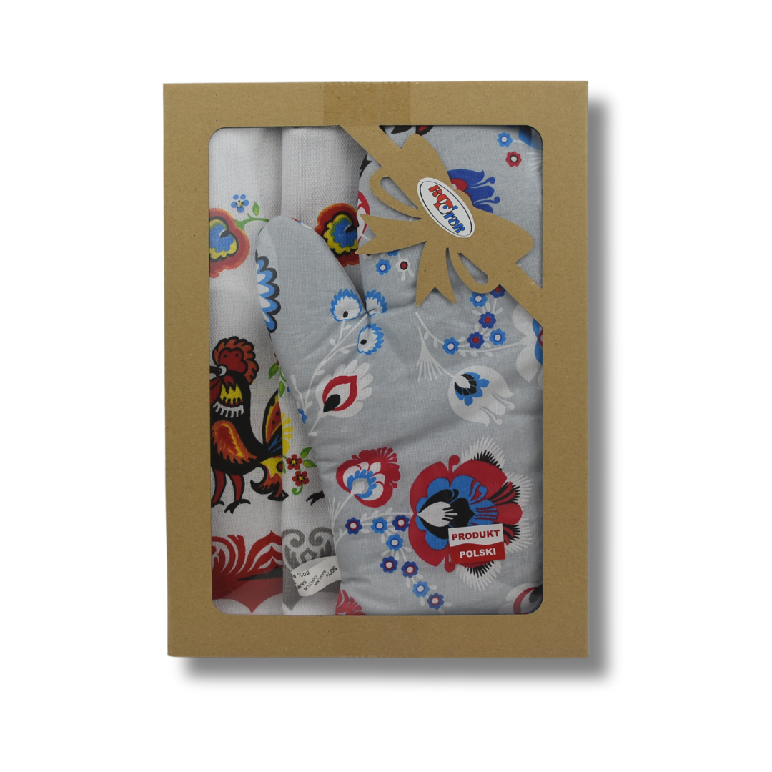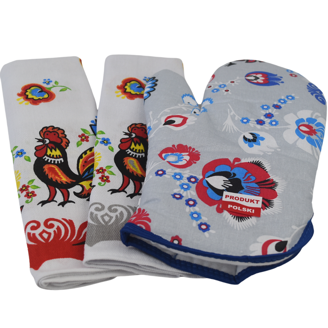 Komplet Kuchenny Łowicki Dwie Ściereczki + Rękawica