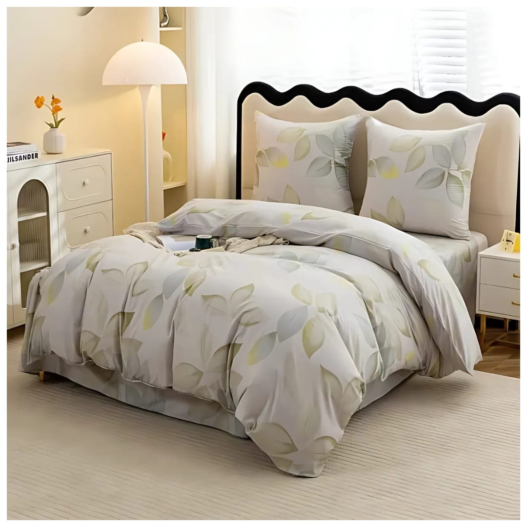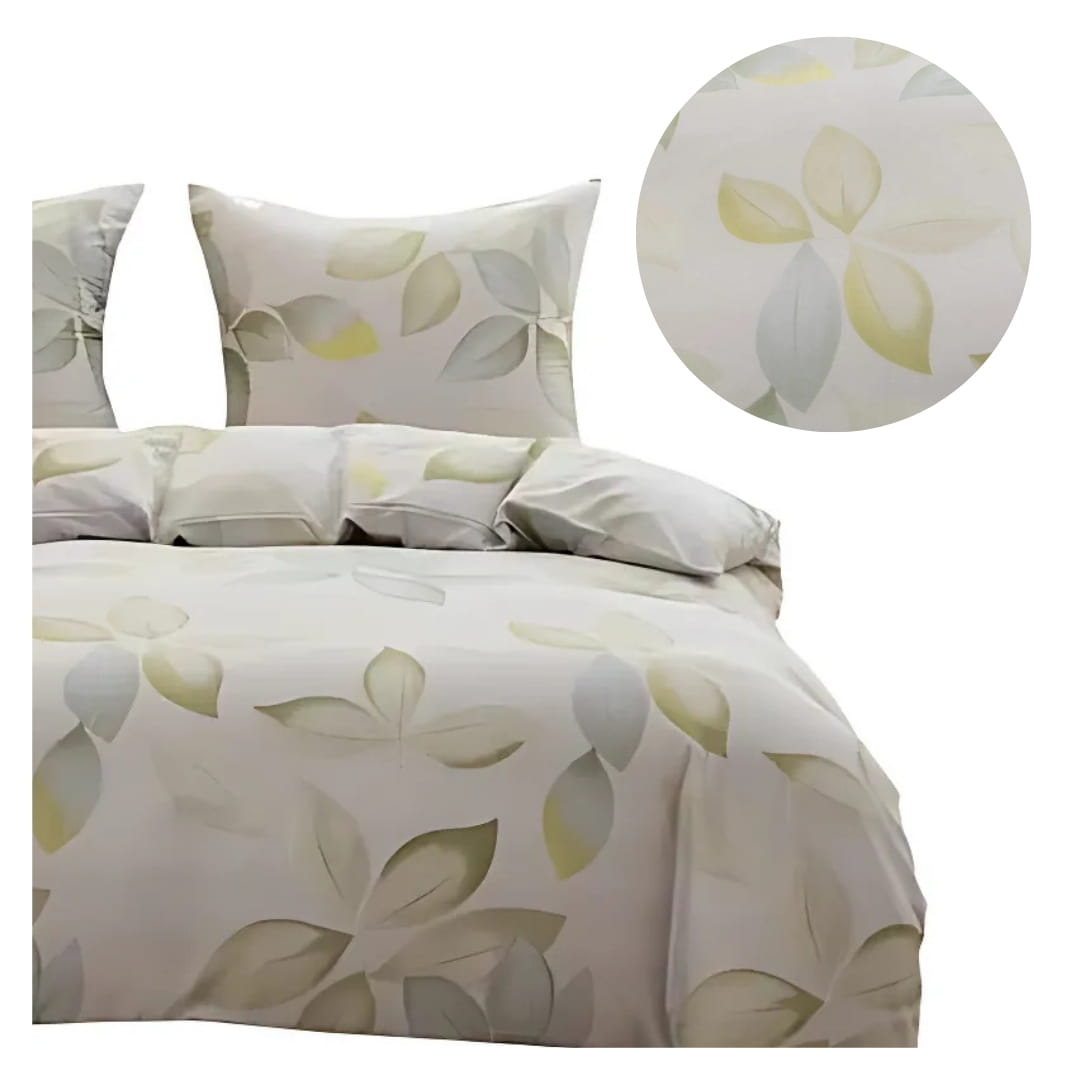 Komplet Pościeli 3D 140x200 + 1x70/80 Listki Satyna Bawełniana 3099
