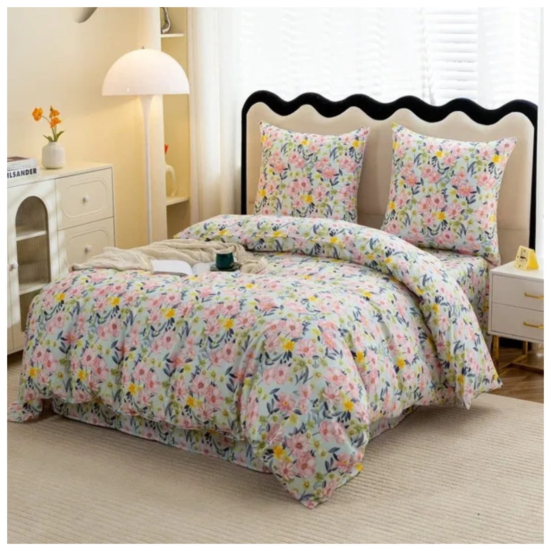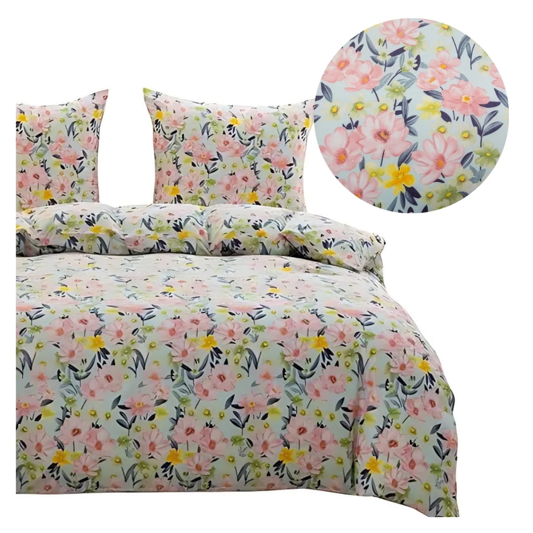 Komplet Pościeli 3D 220x200 + 2x70/80 Kolorowa Łączka Satyna Bawełniana 3097