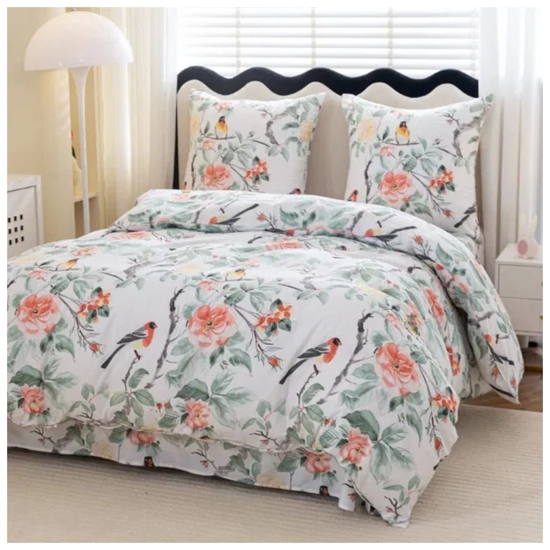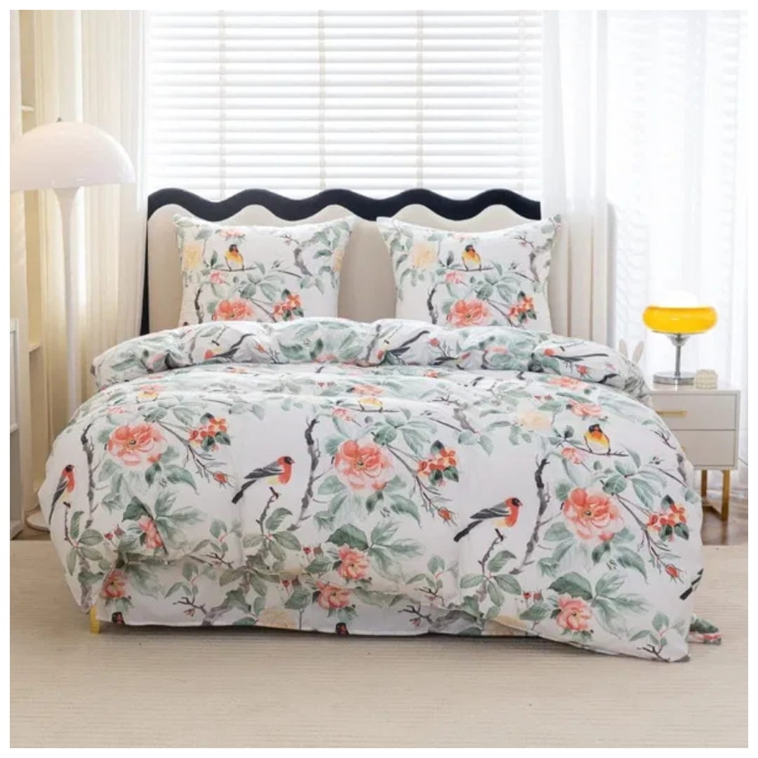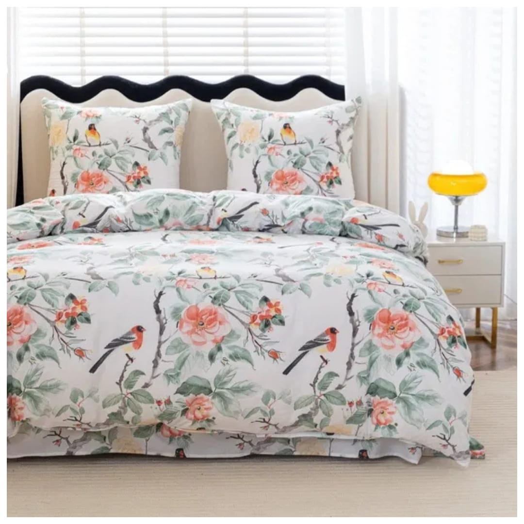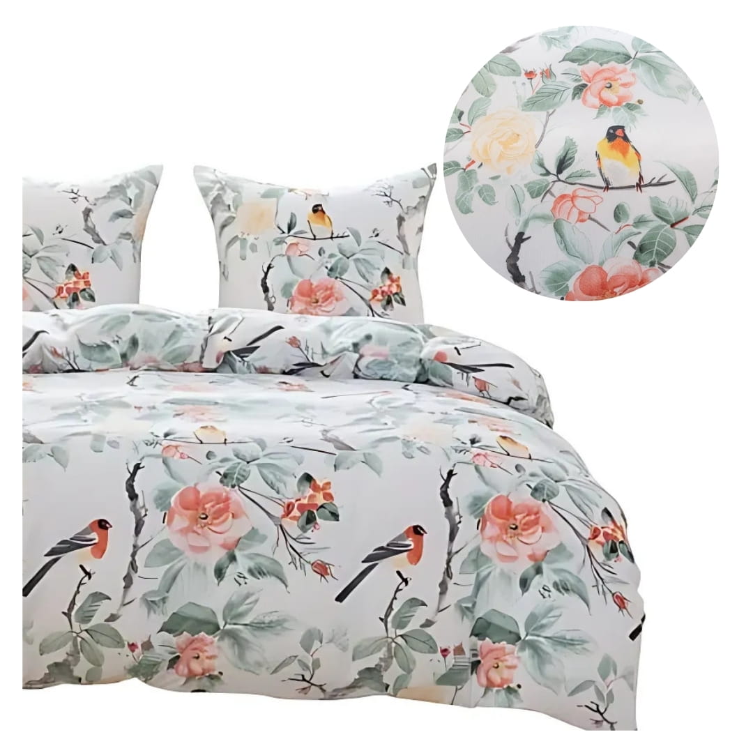Komplet Pościeli 3D 220x200 + 2x70/80 Kwiaty i Ptaki Satyna Bawełniana 3052