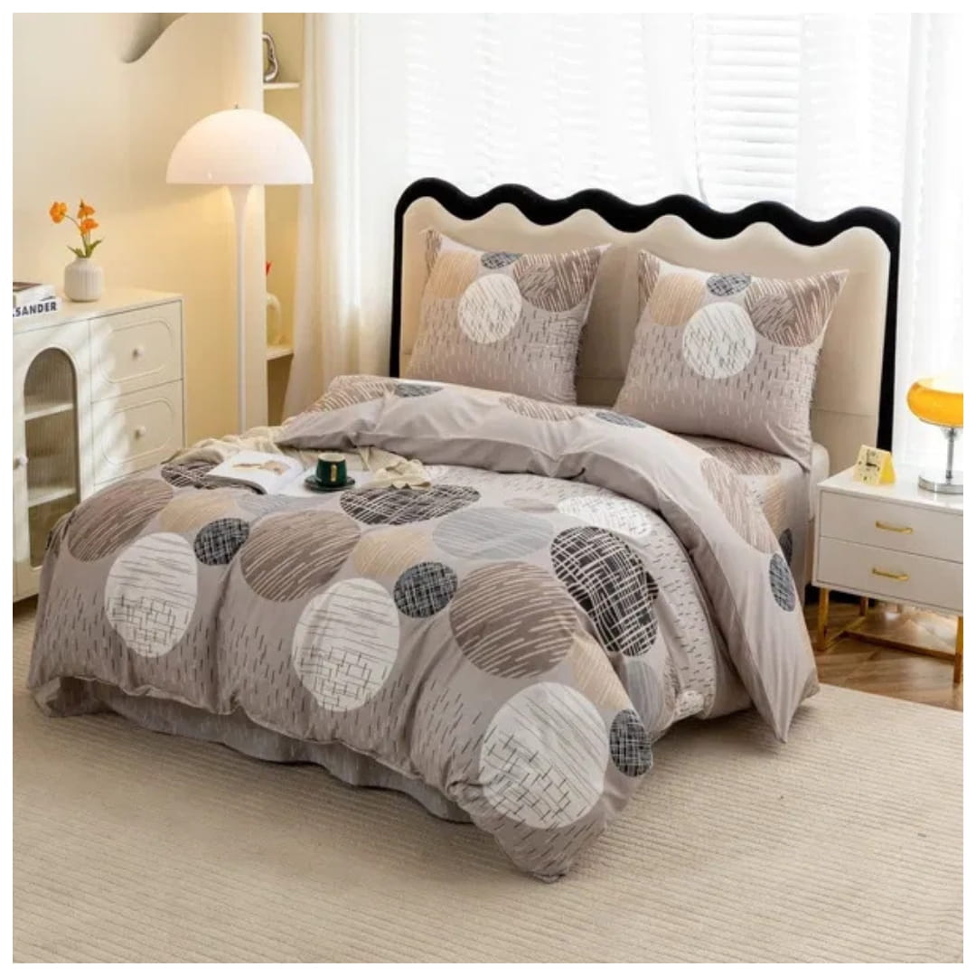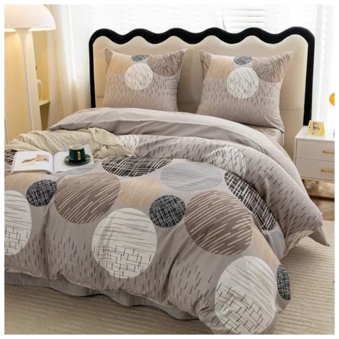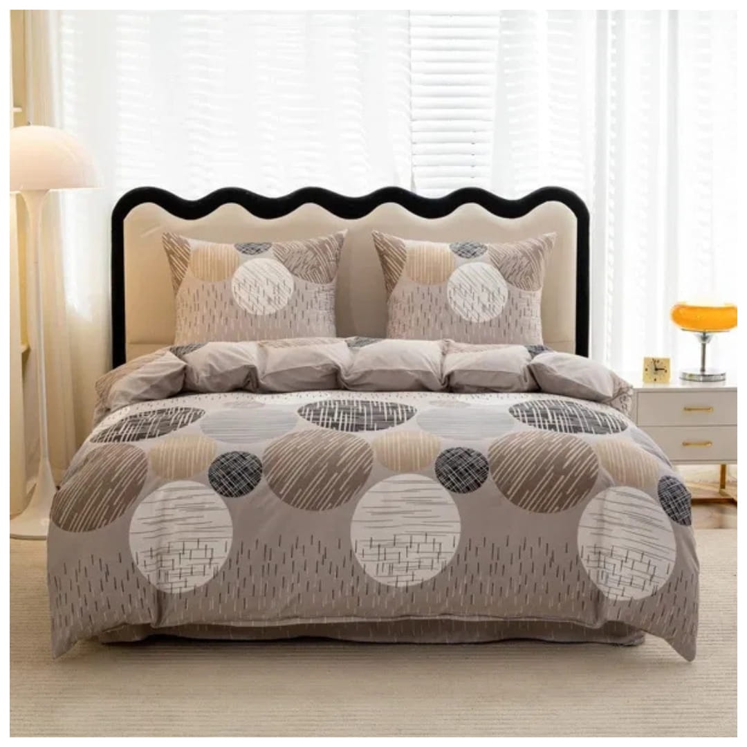 Komplet Pościeli 3D 220x200 + 2x70/80 Retro Okręgi Satyna Bawełniana 3104