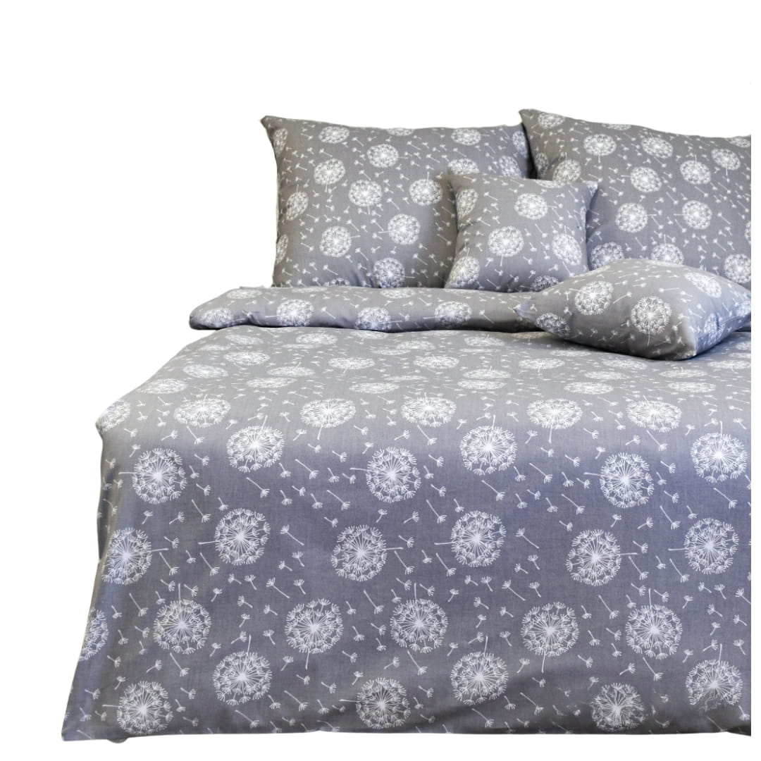 Komplet Pościeli Bawełnianej 140x200 1x70/80 Dmuchawce Na Szarym