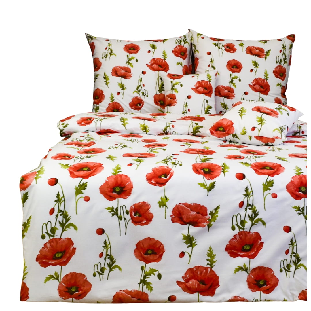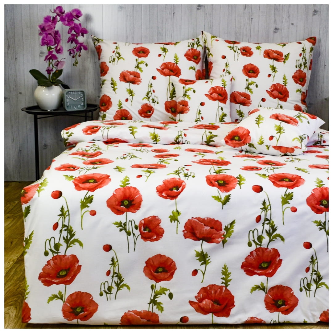 Komplet Pościeli Bawełnianej 140x200 1x70/80 Maki Na Białym