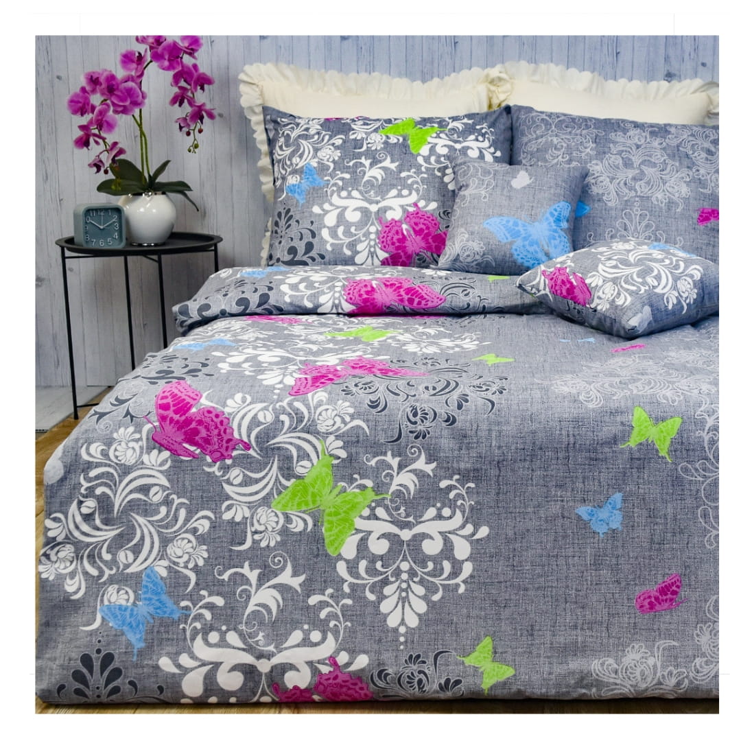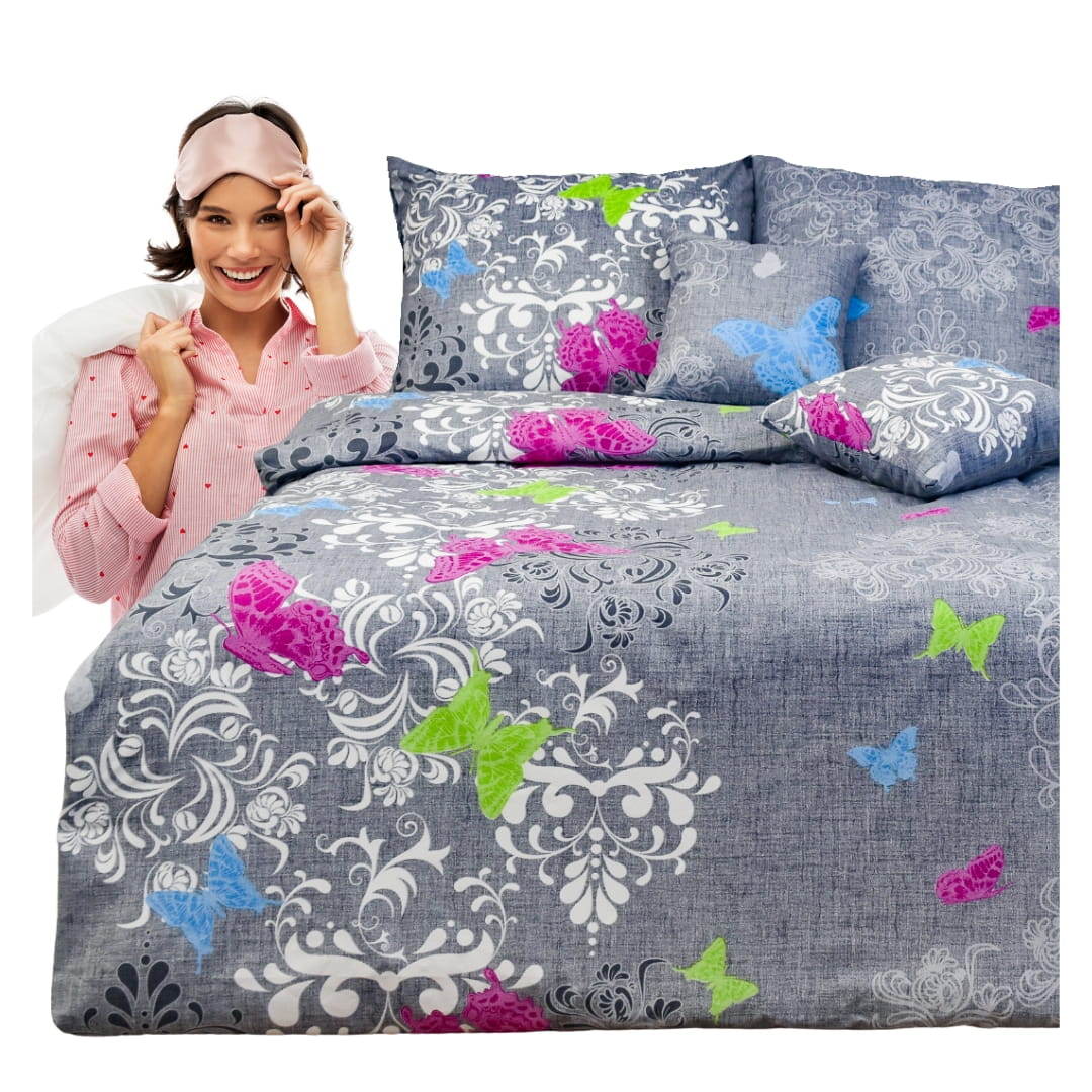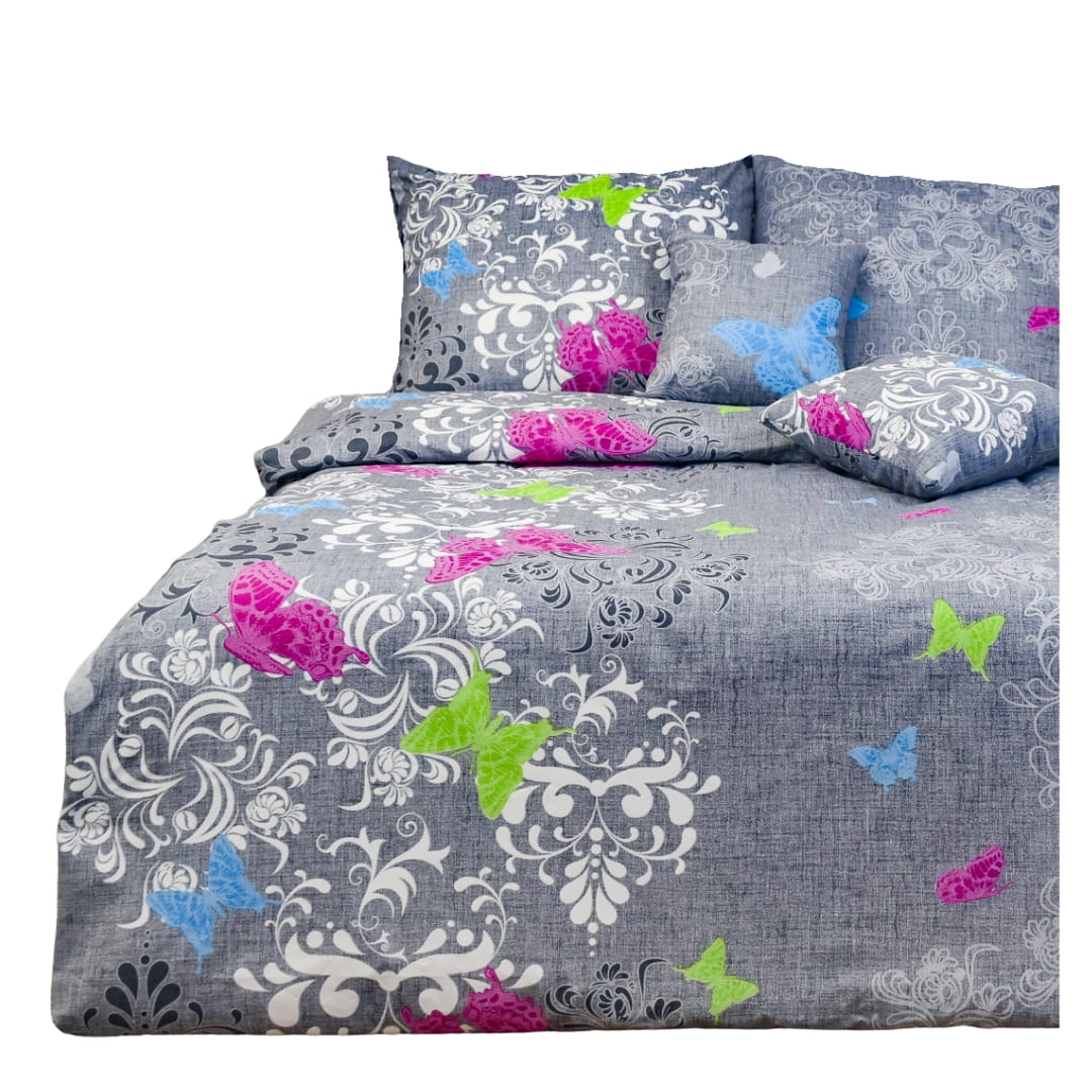 Komplet Pościeli Bawełnianej 140x200 1x70/80 Motyl Na Szarym