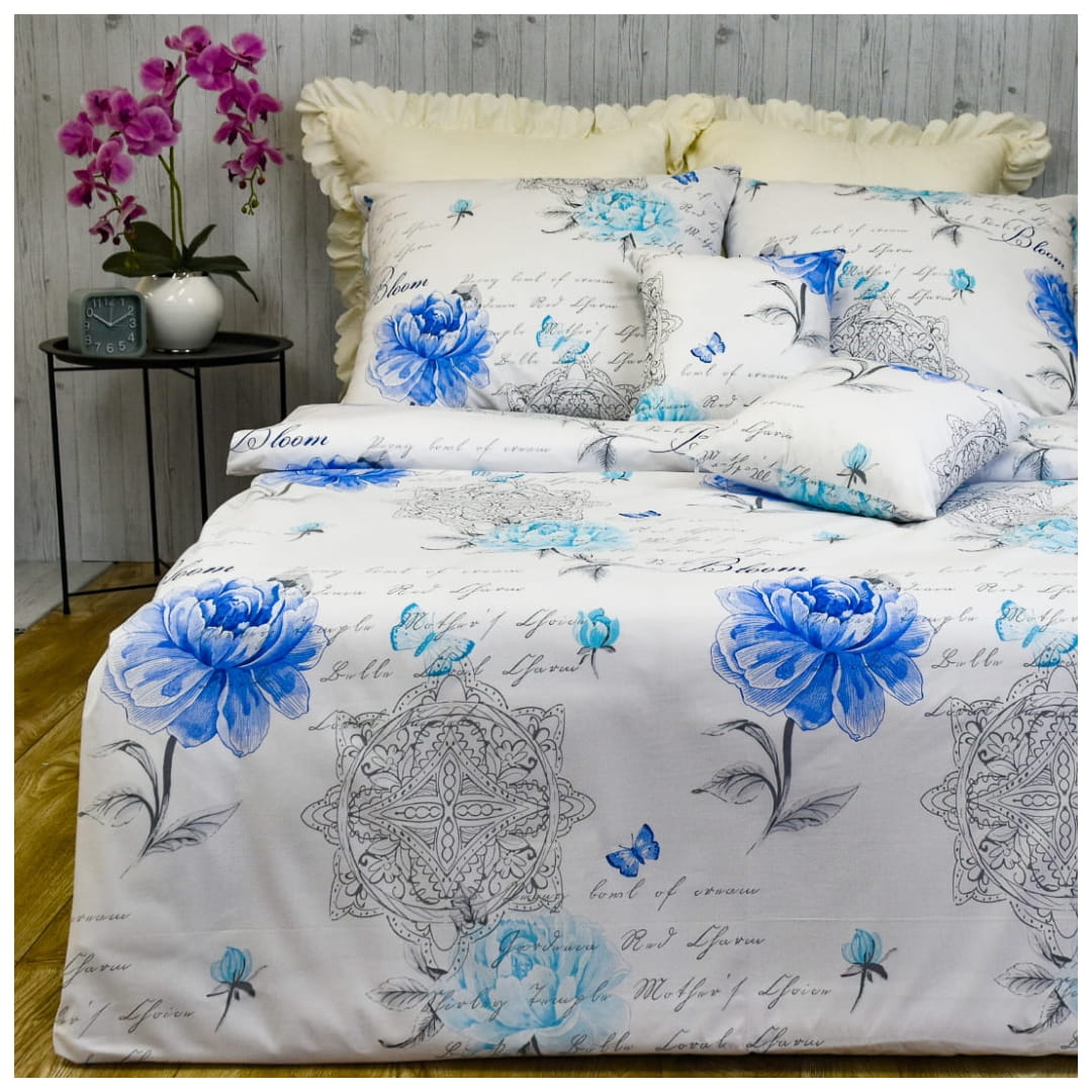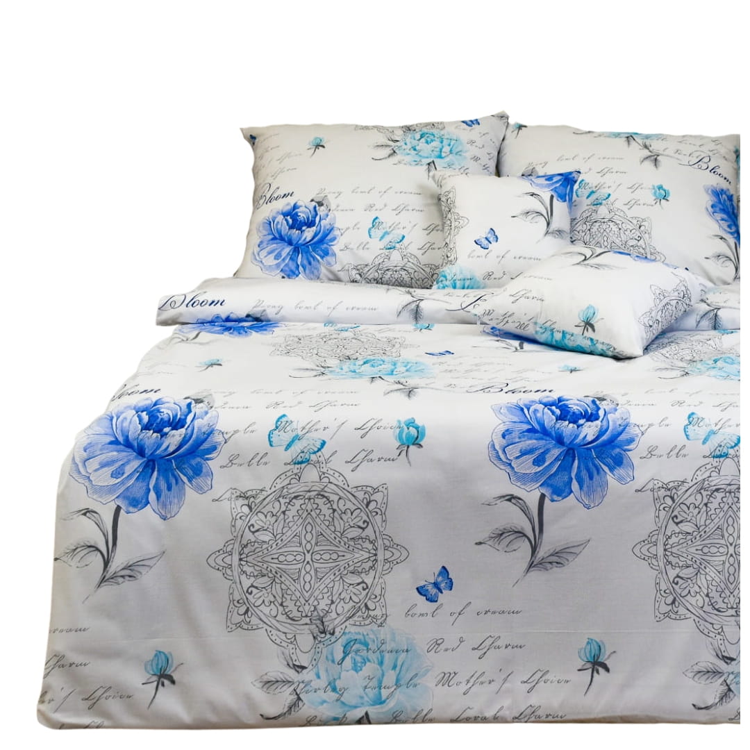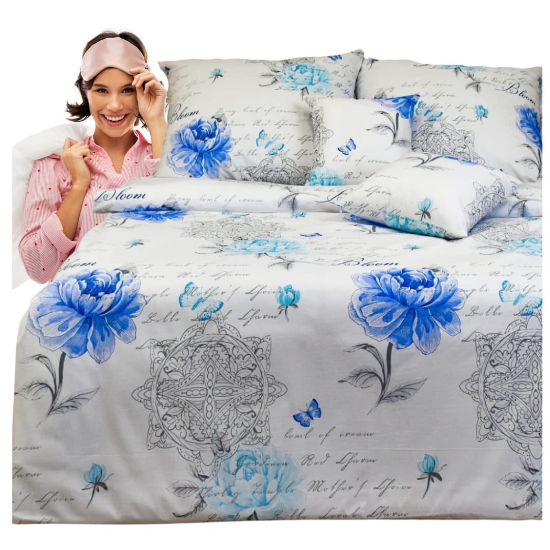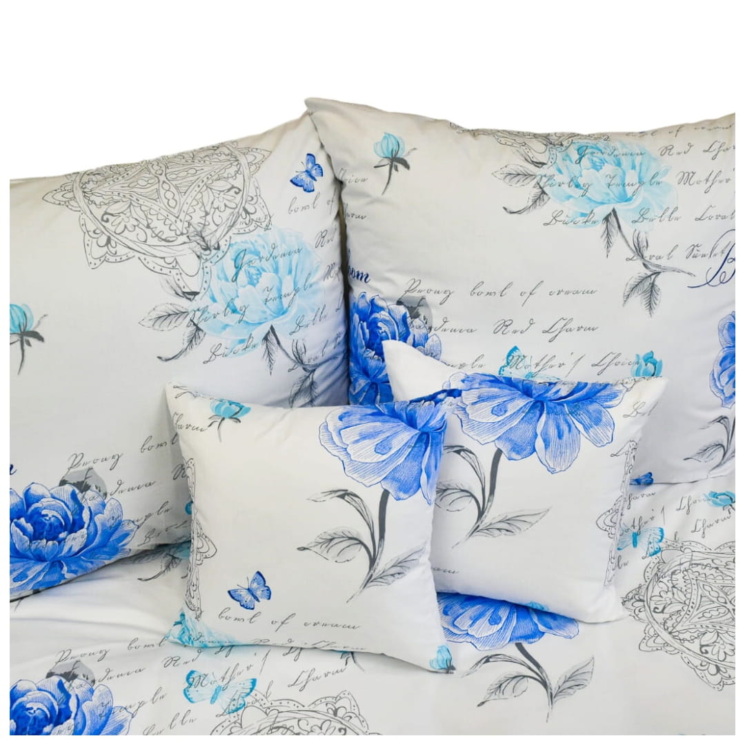 Komplet Pościeli Bawełnianej 140x200 1x70/80 Motyle Piwonie Niebieskie