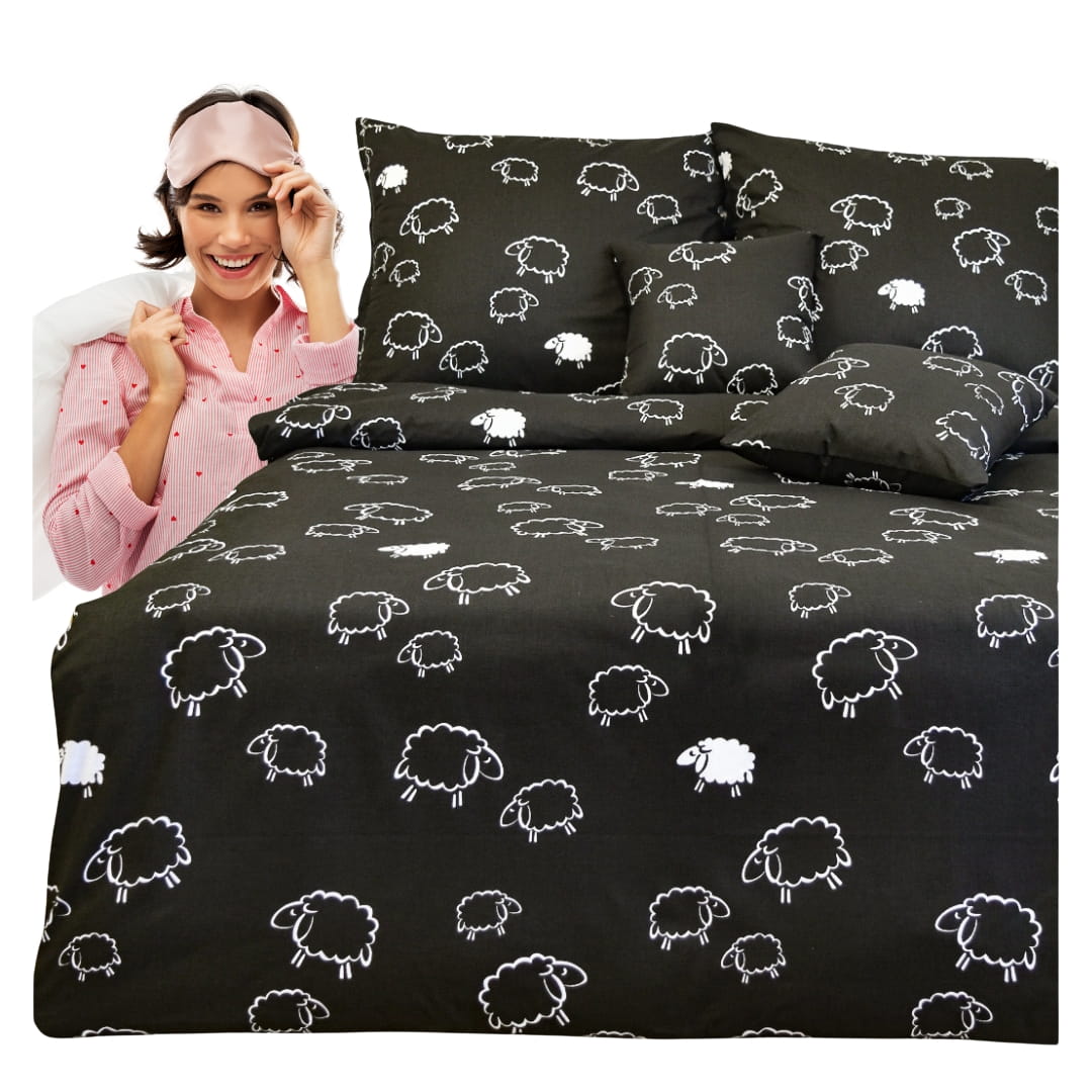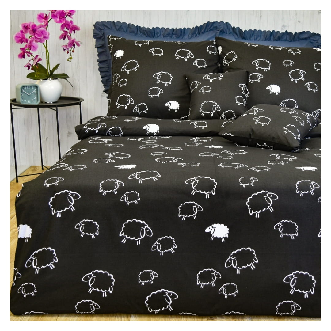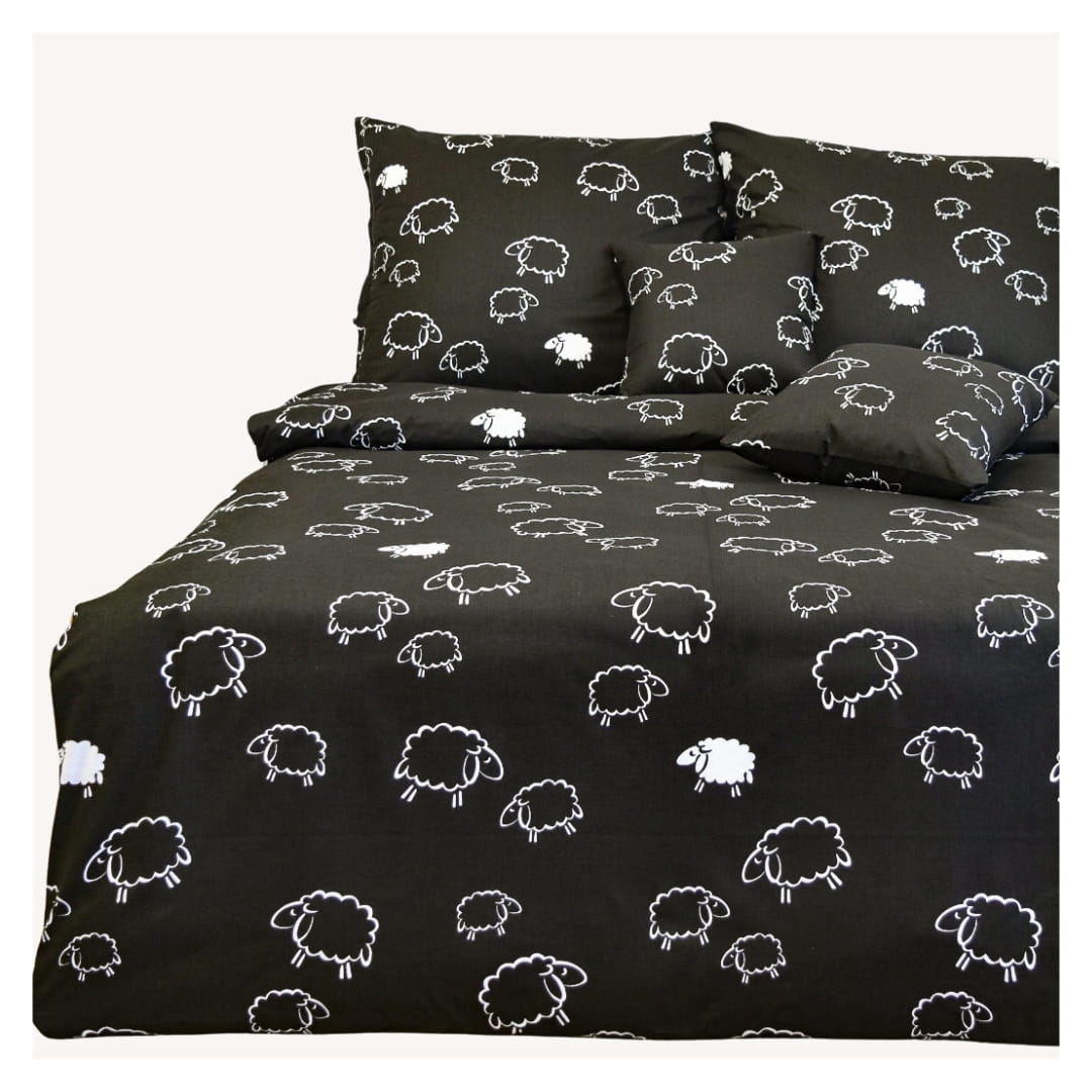 Komplet Pościeli Bawełnianej 140x200 1x70/80 Owieczki Na Czarnym