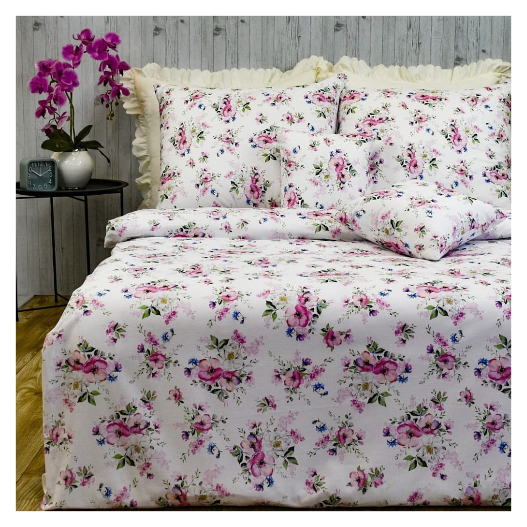 Komplet Pościeli Bawełnianej 140x200 2x70/80 Wiosna-Jabłonka Biała