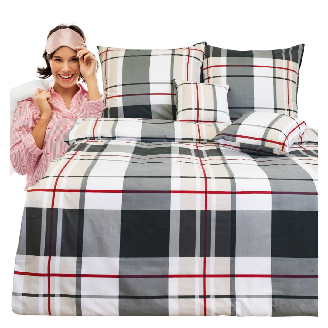 Komplet Pościeli Bawełnianej 160x200 2x70/80 Krata Classic Beż