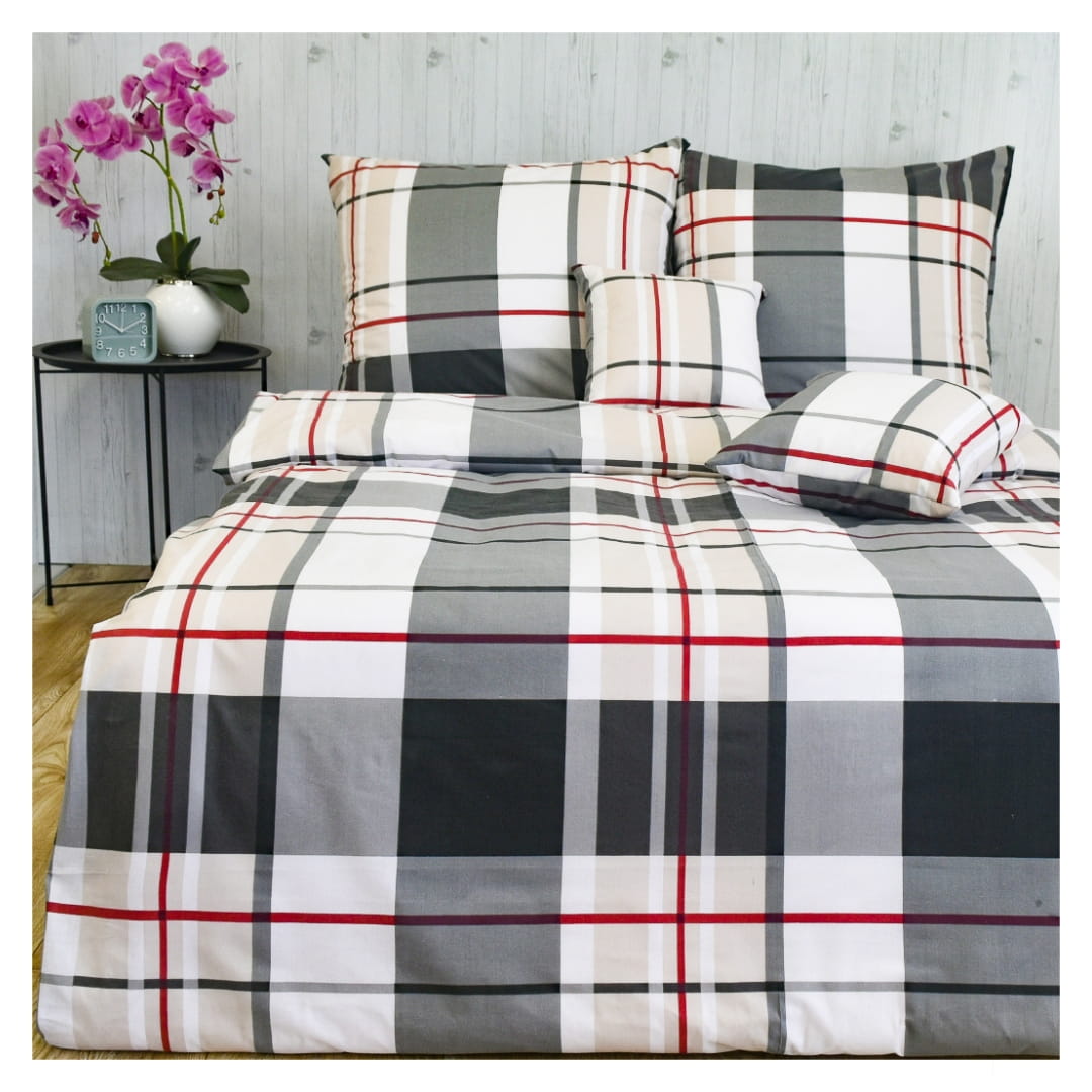 Komplet Pościeli Bawełnianej 220x200 2x70/80 Krata Classic Beż