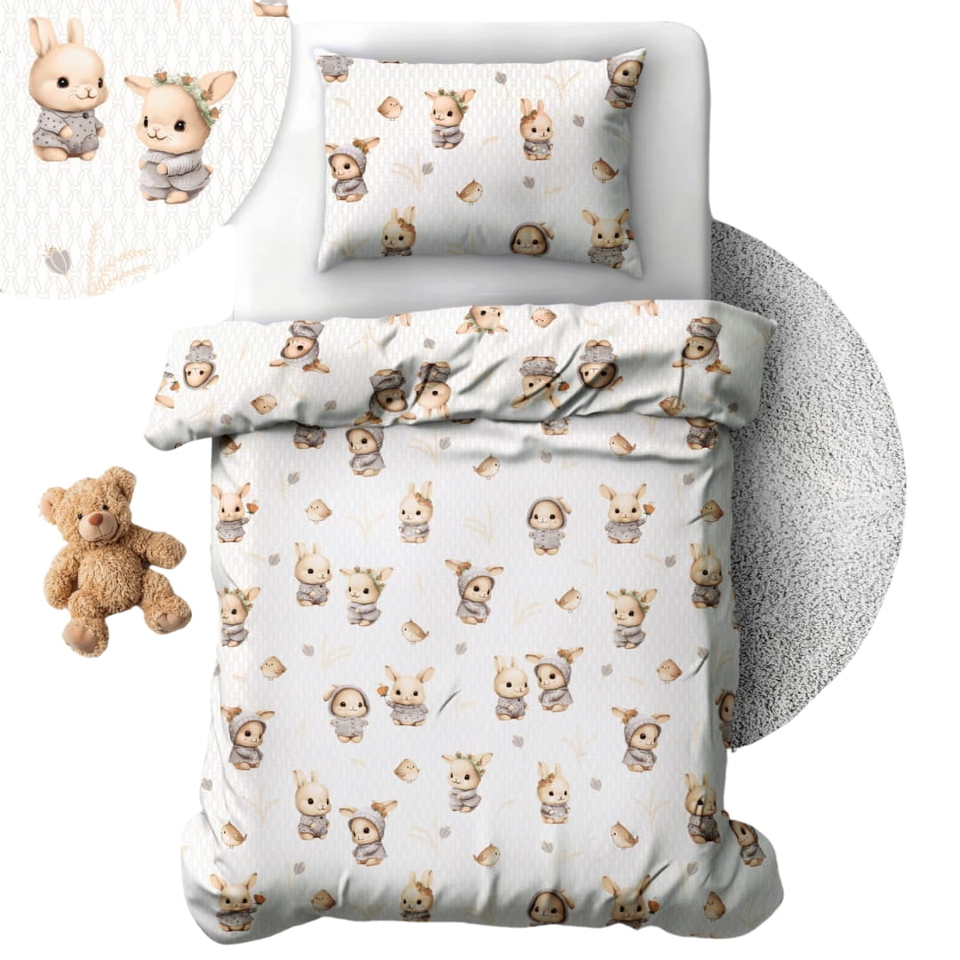 Komplet Pościeli Dziecięcej 100x135 + 40x60 Króliczki Beż