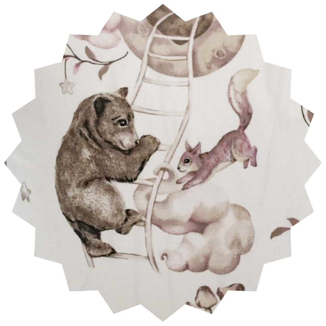 Komplet pościeli dziecięcej Misie Na Drabince w rozmiarze 100x135 z poszewką w rozmiarze 40x60. Pościel dziecięca "Misie Na Drabince" charakteryzuje się delikatnym, uroczym wzorem w misie w różnych odcieniach beżu na jasnym tle. Na białym tle znajdują się misie oraz wiewiórki. Wzór jest powtarzalny i harmonijny, idealny do dziecięcego pokoju, nadając mu lekkiego i radosnego charakteru.