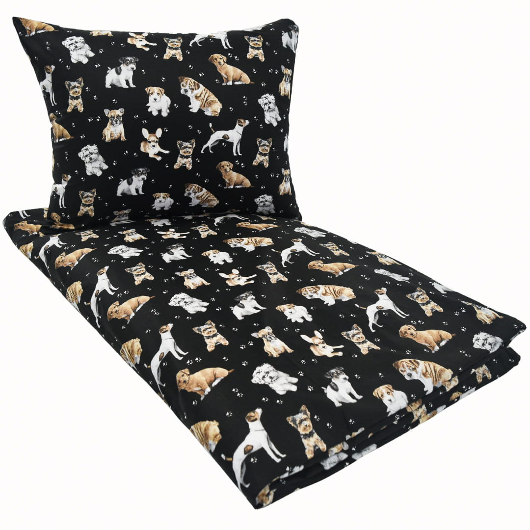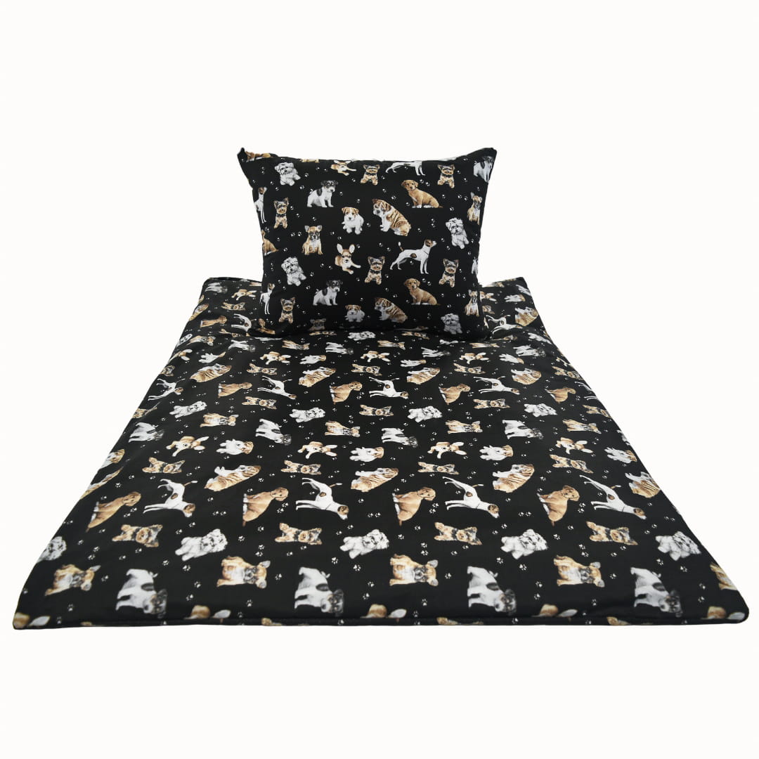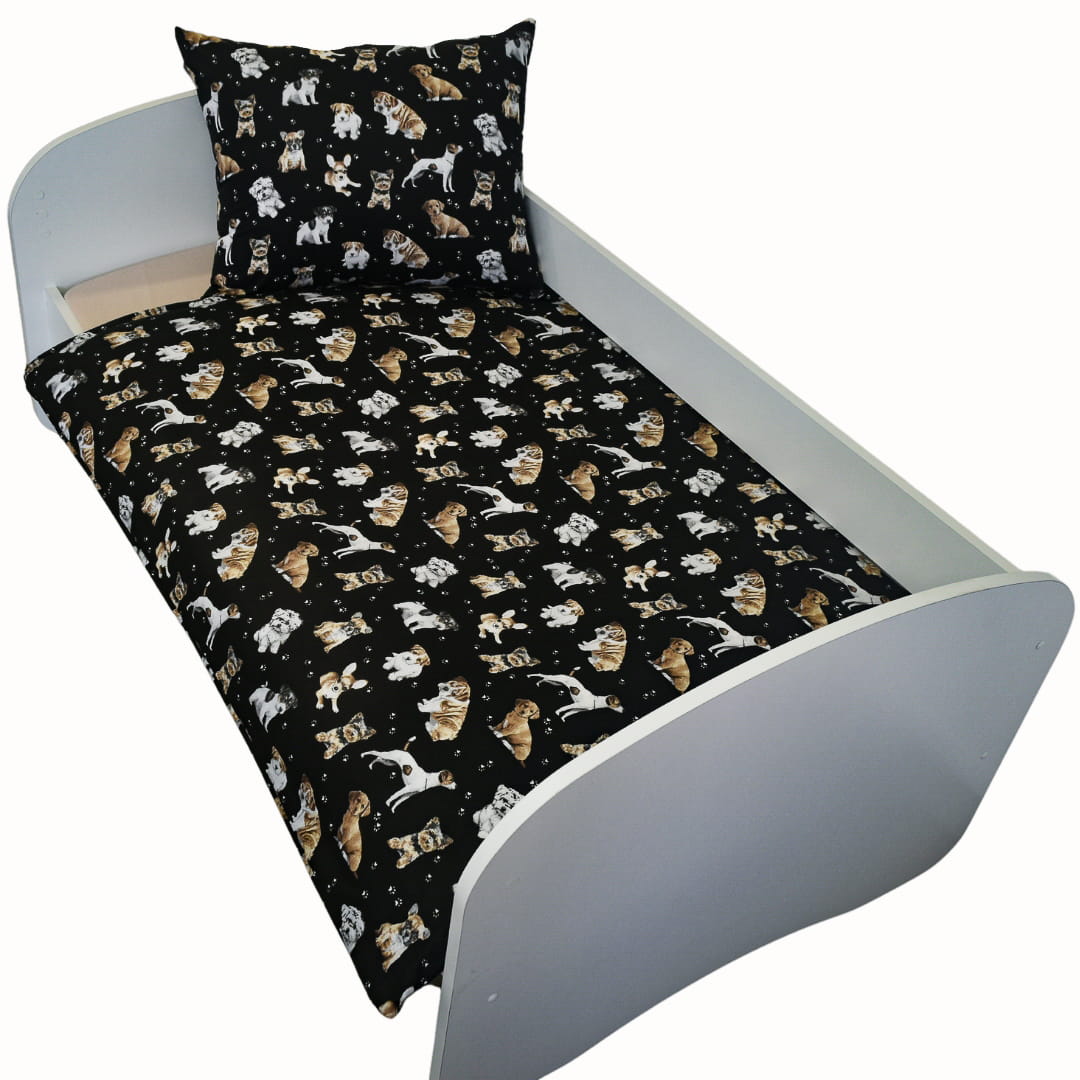 Komplet Pościeli Dziecięcej 100x135 + 40x60 Pieski Łapki Czarne