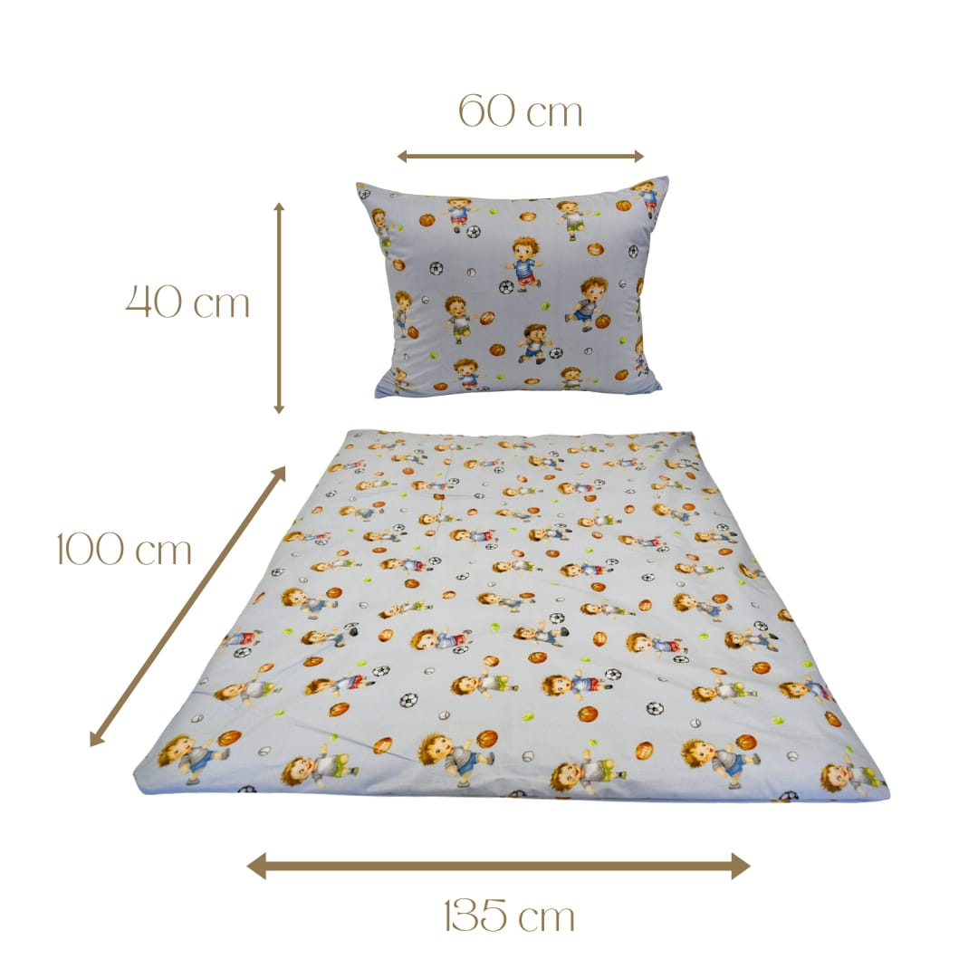 Komplet Pościeli Dziecięcej 100x135 + 40x60 Piłkarzyki Błękit
