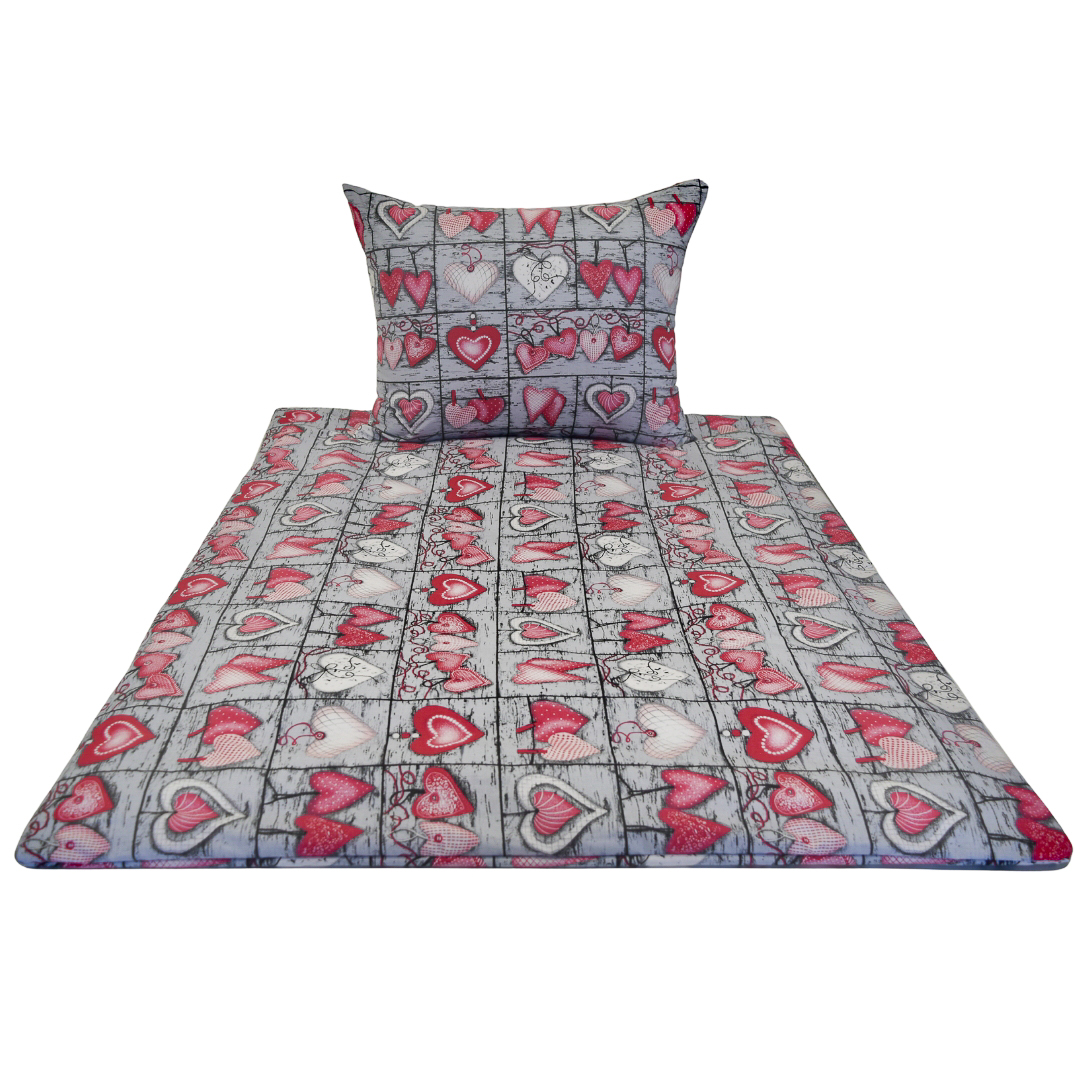 Komplet Pościeli Dziecięcej 100x135 + 40x60 Serca Na Desce Czerwone