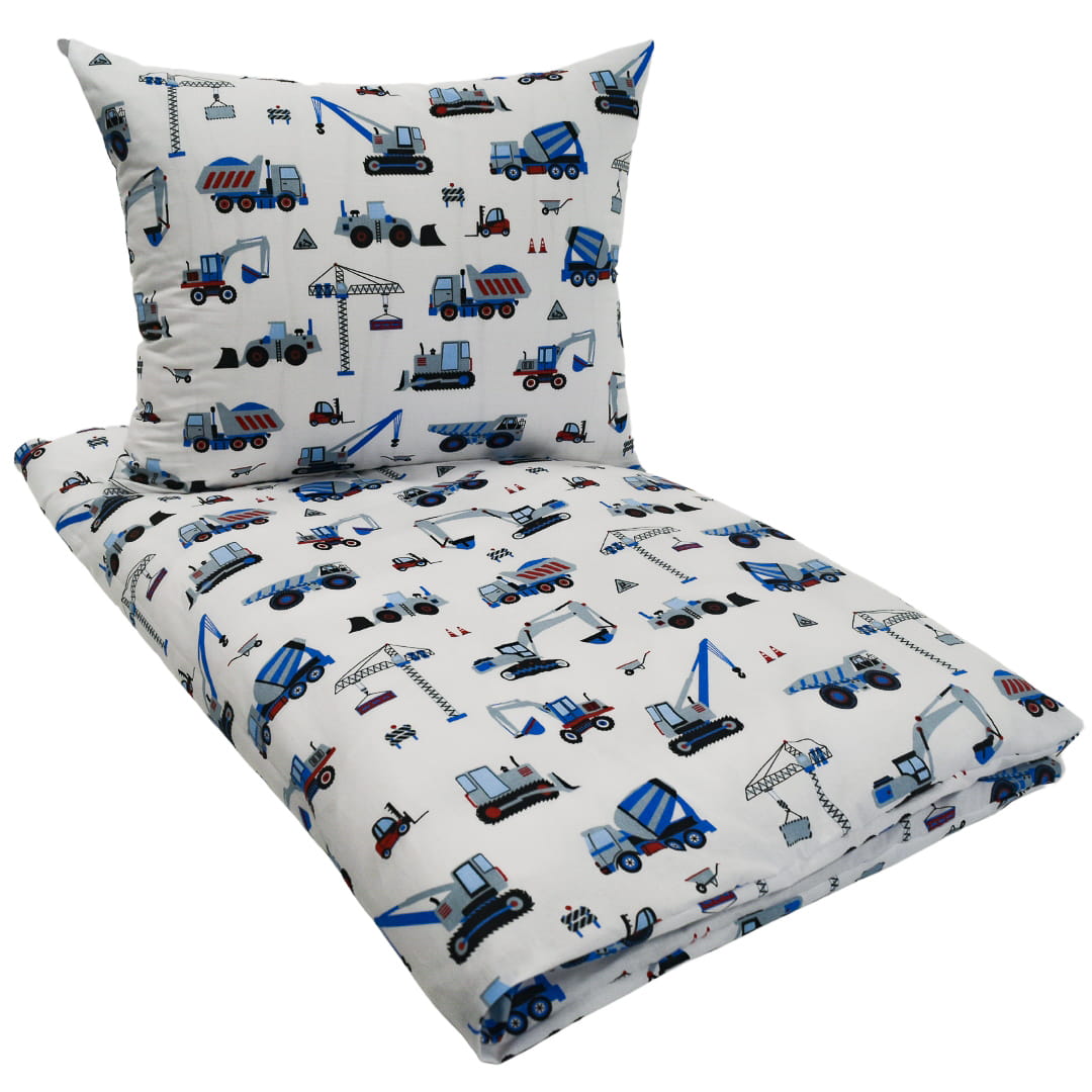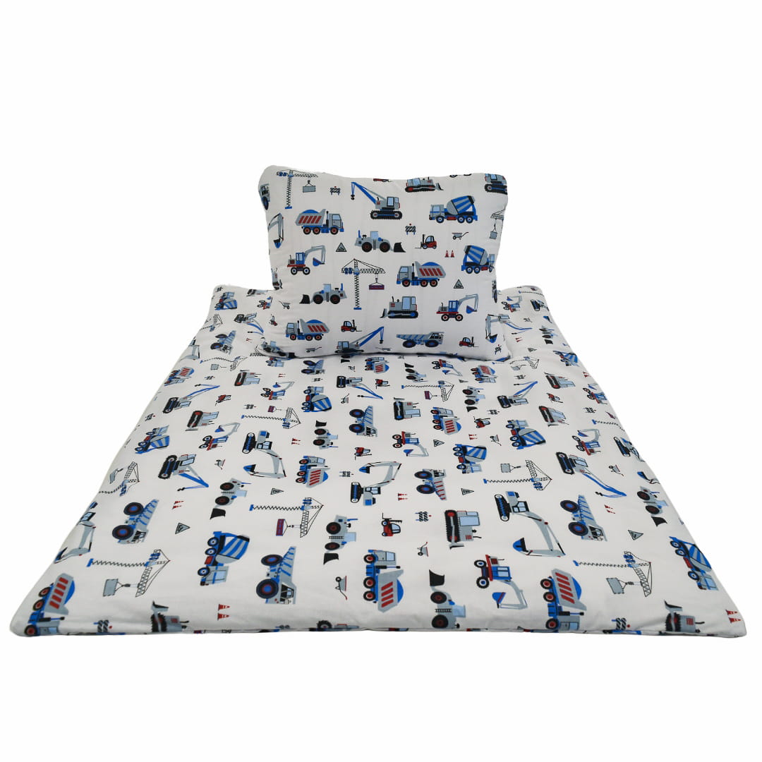 Komplet Pościeli Dziecięcej 100x135 + 50x60 Koparki Niebieskie Na Białym