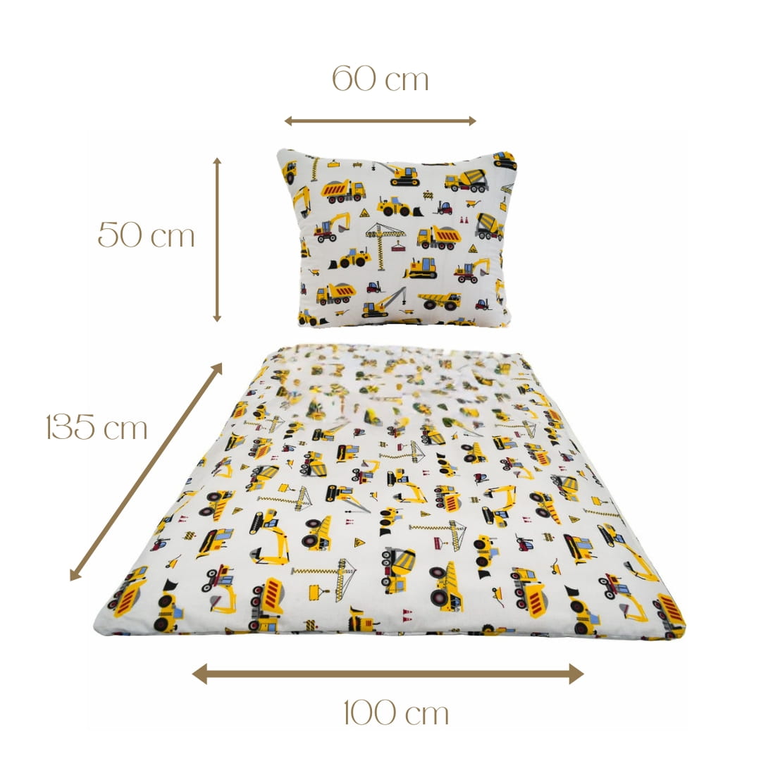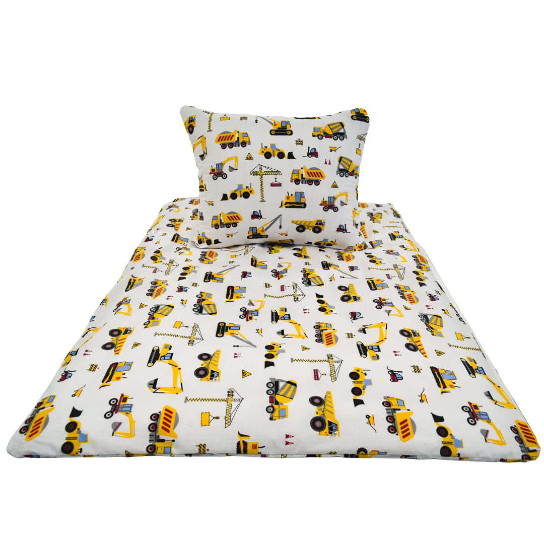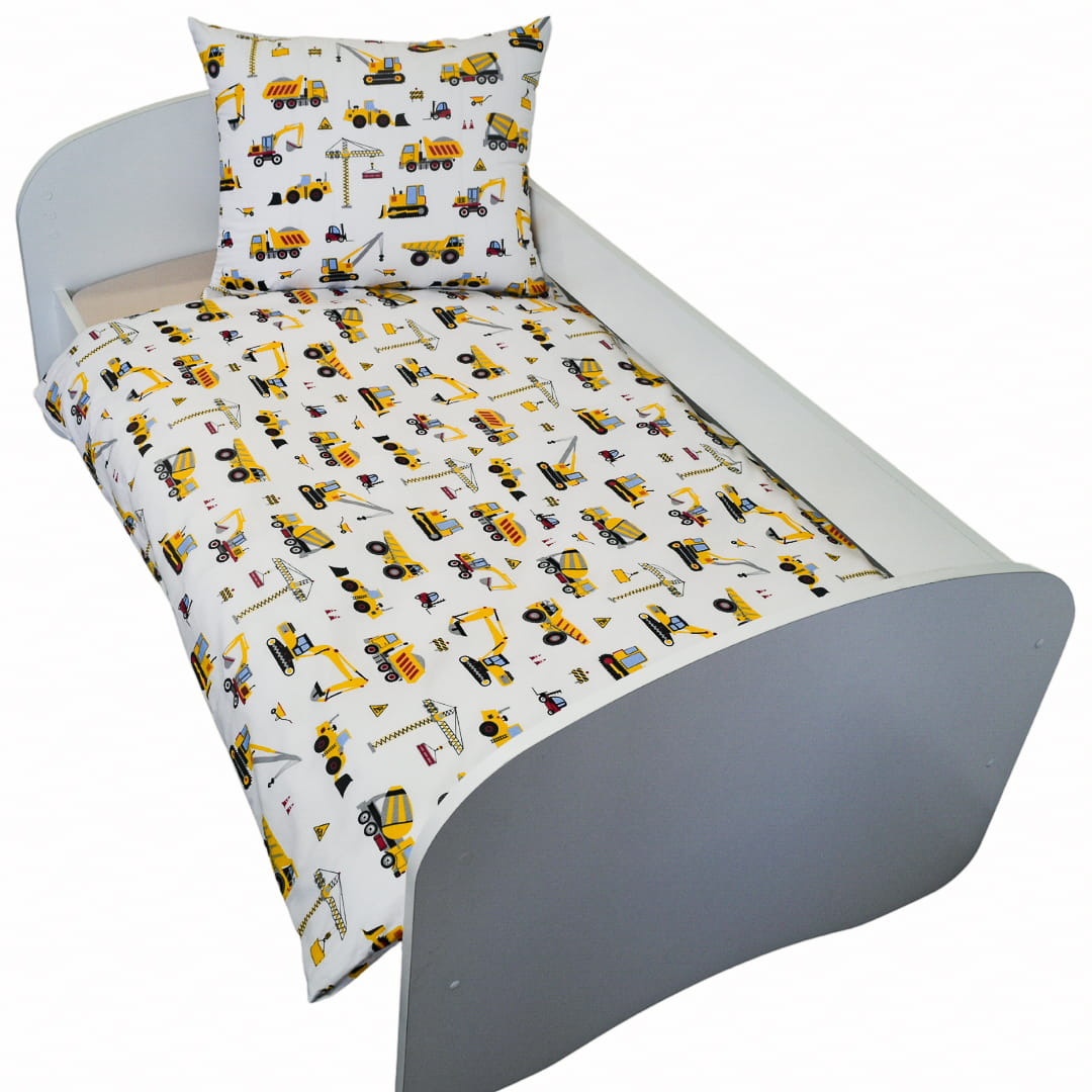 Komplet Pościeli Dziecięcej 100x135 + 50x60 Koparki Żółte Na Białym