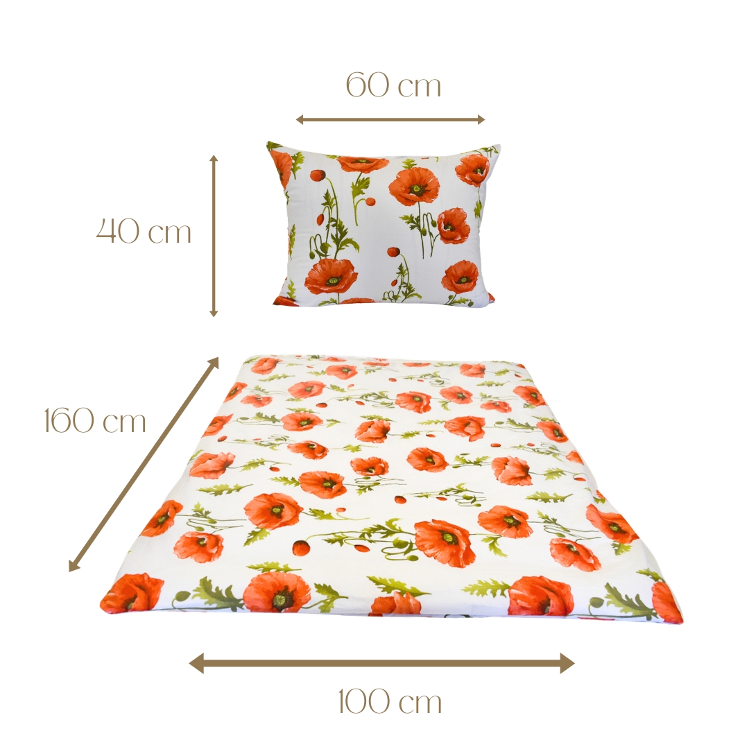 Komplet Pościeli Dziecięcej 100x160 + 40x60 Maki Na Białym