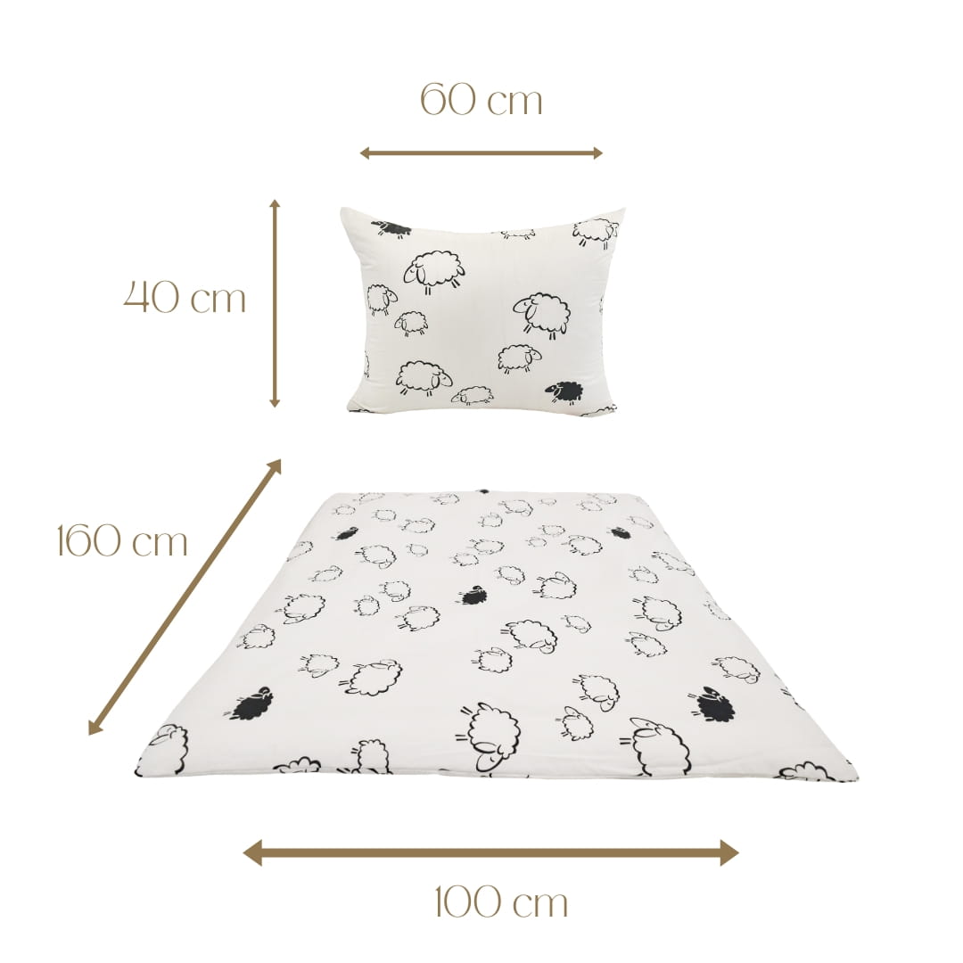 Komplet Pościeli Dziecięcej 100x160 + 40x60 Owieczki Na Białym