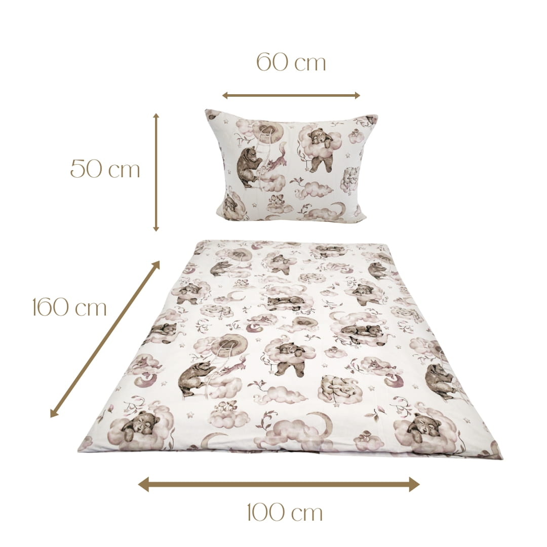 Komplet Pościeli Dziecięcej 100x160 + 50x60 Misie Na Drabince