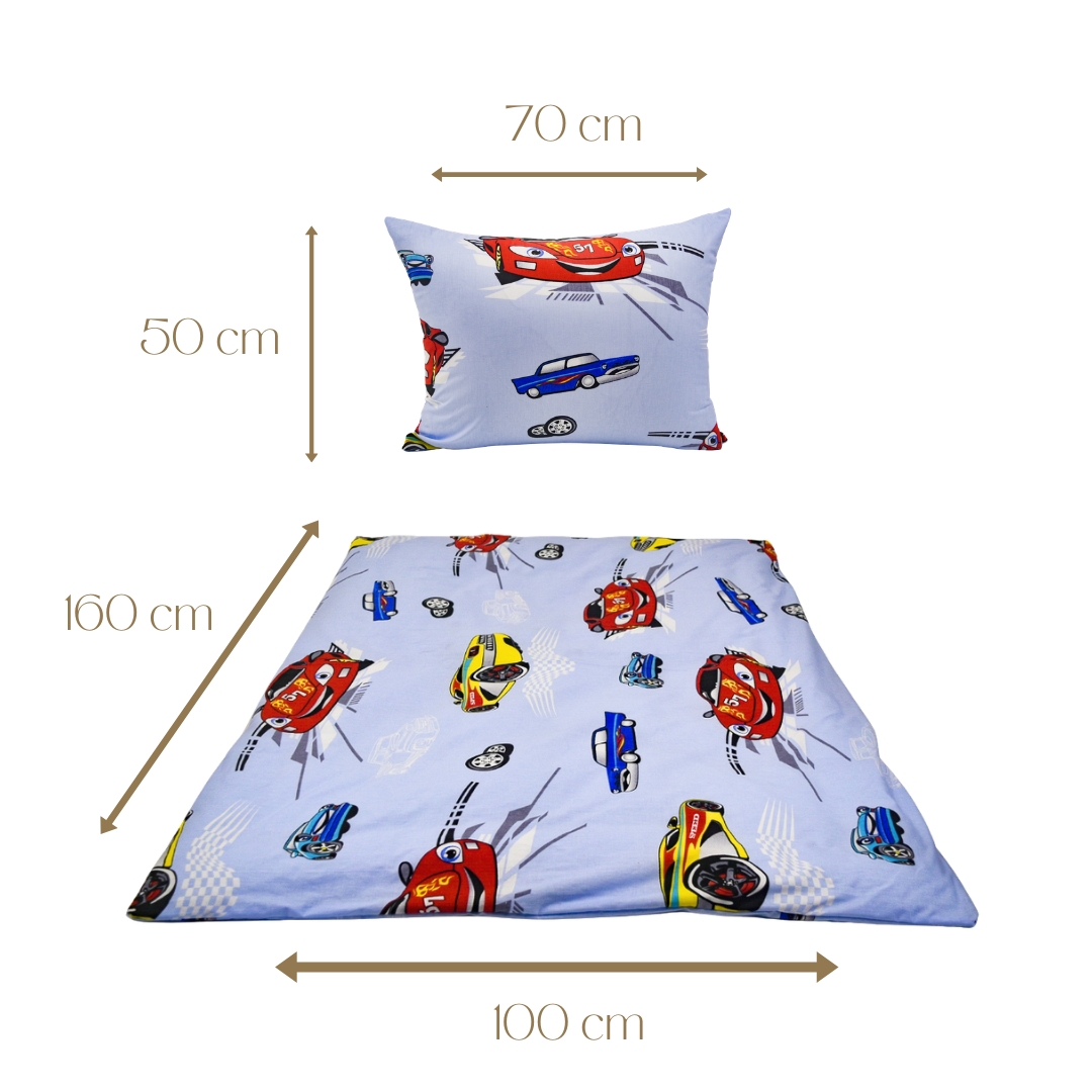 Komplet Pościeli Dziecięcej 100x160 + 50x70 Auta Cars Niebieskie