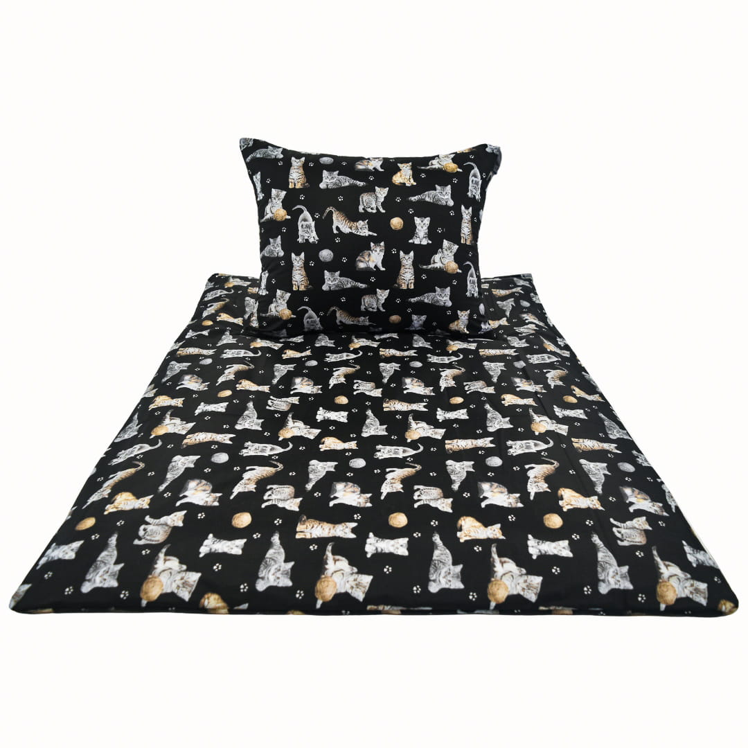 Komplet Pościeli Dziecięcej 100x160 + 50x70 Kotki Łapki Czarne