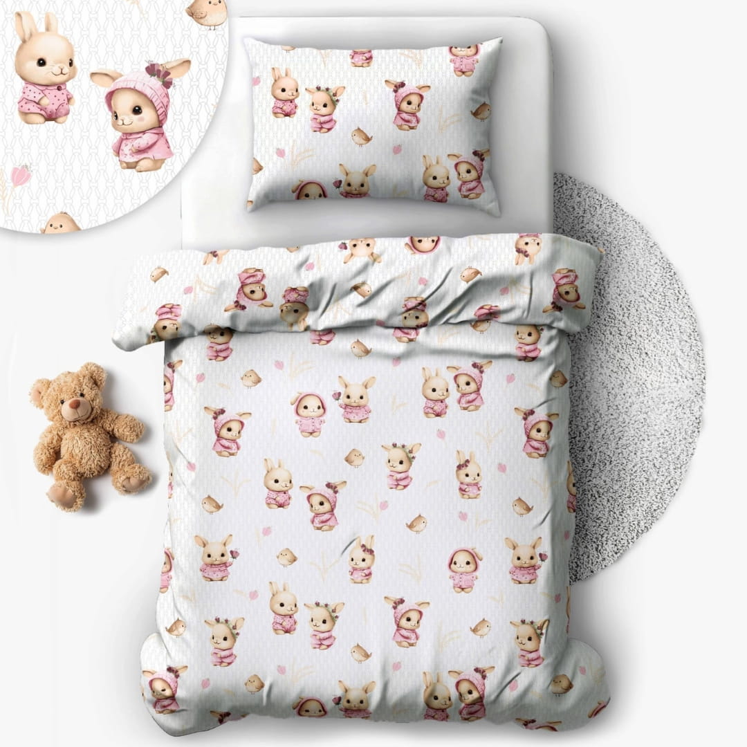 Komplet Pościeli Dziecięcej 100x160 + 50x70 Króliczki Róż