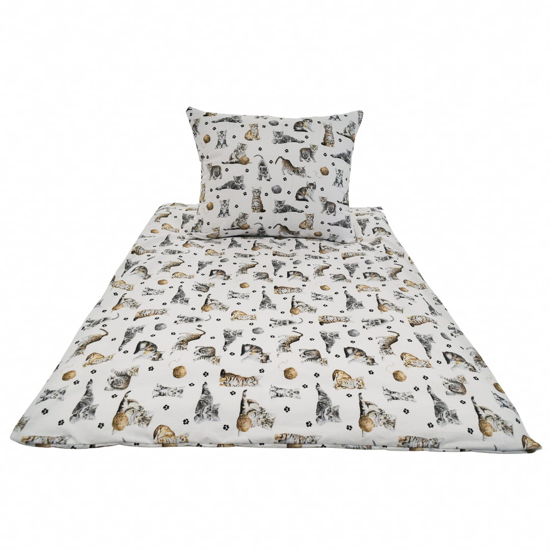 Komplet Pościeli Dziecięcej 100x160 + 70x80 Kotki Łapki Białe
