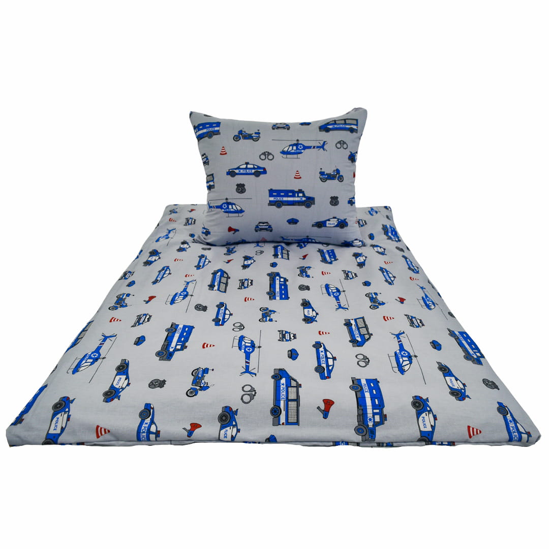 Komplet Pościeli Dziecięcej 120x160 + 50x60 Policja Na Szarym