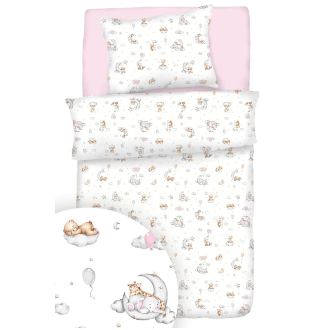 Komplet Pościeli Dziecięcej 140x160 + 50x60 Miśki Na Księżycu Biel