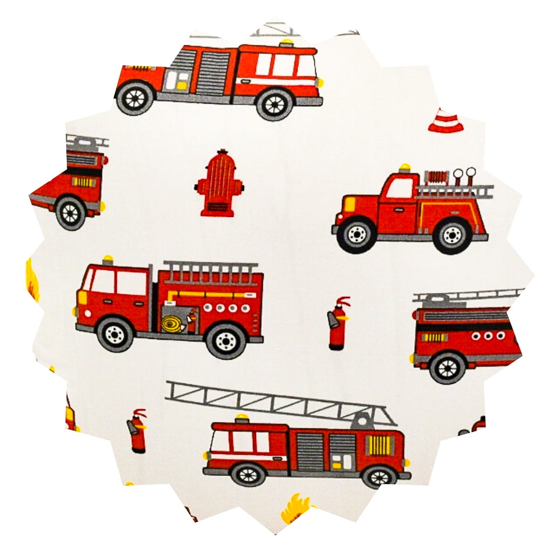 Komplet pościeli dziecięcej Straż Biała w rozmiarze 140x160 z poszewką w rozmiarze 50x60. Wzór pościeli jest dynamiczny i idealny dla fanów straży pożarnej, zwłaszcza dla dzieci, które fascynują się pojazdami ratunkowymi. Na całej powierzchni pościeli widoczne są różne ilustracje czerwonych wozów strażackich, każdy z charakterystycznymi elementami, takimi jak drabiny, syreny czy zbiorniki na wodę. Pojazdy różnią się między sobą, co dodaje wzorowi różnorodności. Wzór zawiera również inne motywy związane ze strażą pożarną, takie jak hydranty, pachołki ostrzegawcze oraz symboliczne płomienie. Wszystkie te elementy podkreślają tematykę pożarniczą. Dominują żywe kolory, zwłaszcza czerwień i pomarańcz na białym tle, co sprawia, że wzór jest wyrazisty i przyciąga uwagę.