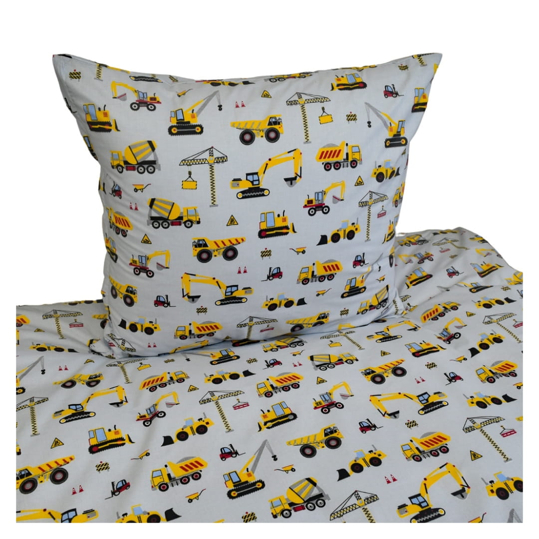 Komplet Pościeli Dziecięcej 140x200 + 1 x 50x60 Koparki Żółte Na Szarym