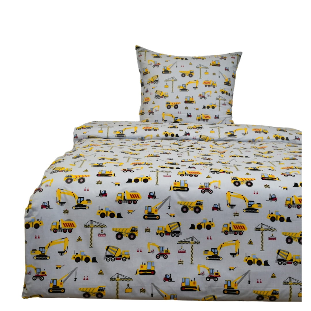 Komplet Pościeli Dziecięcej 140x200 + 1 x 70x80 Koparki Żółte Na Szarym