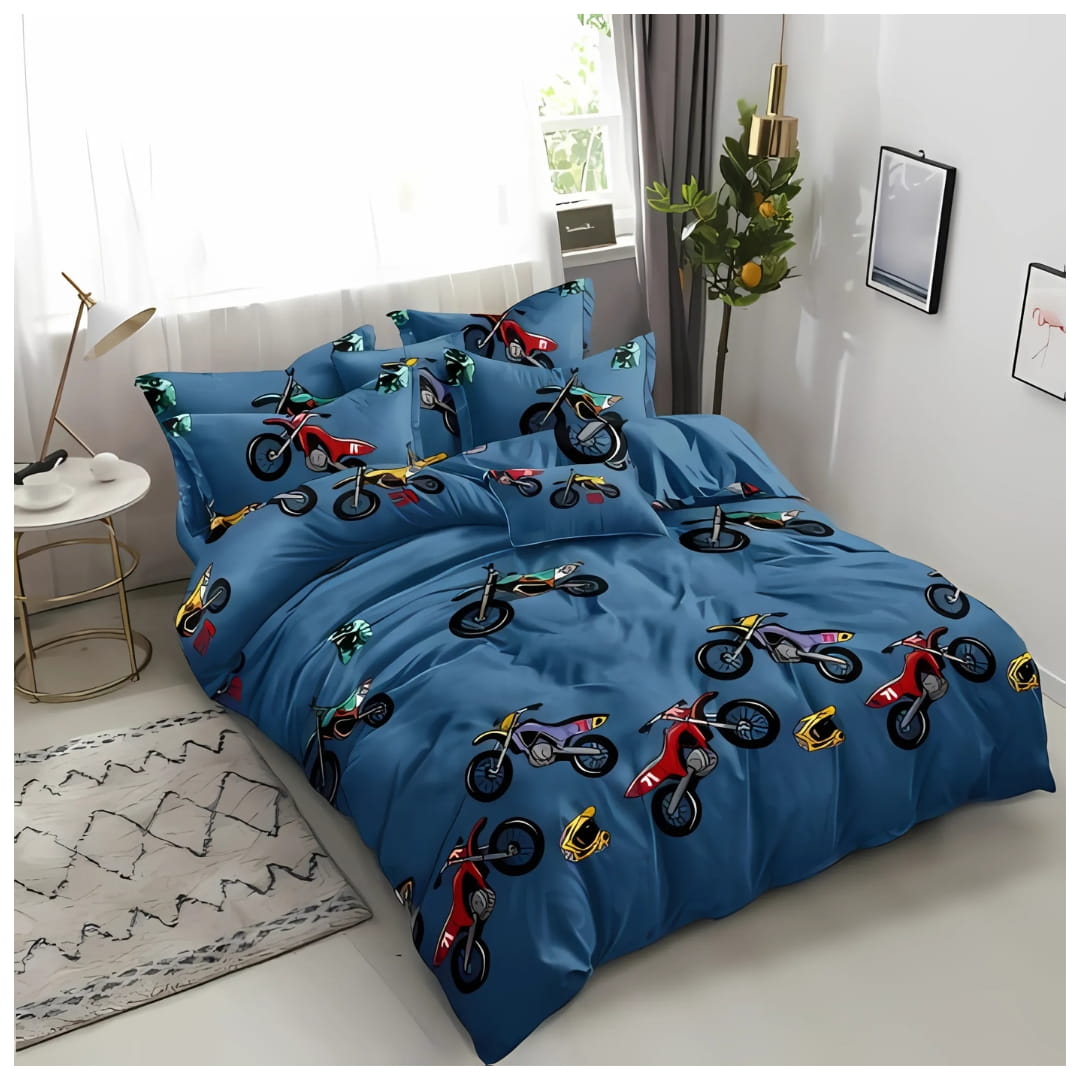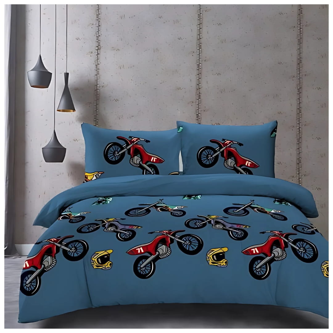 Komplet Pościeli Dziecięcej 3D 140x200 + 1x70/80 Motocross Satyna Bawełniana 2508