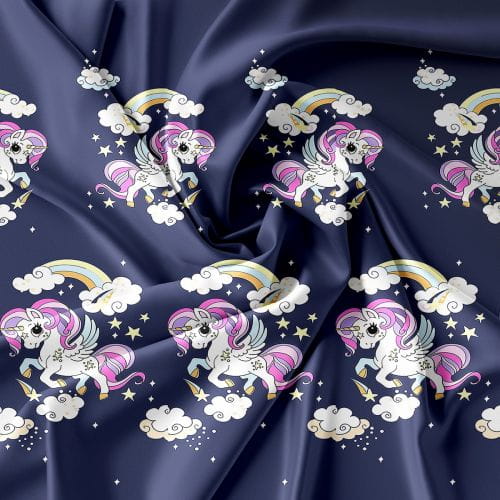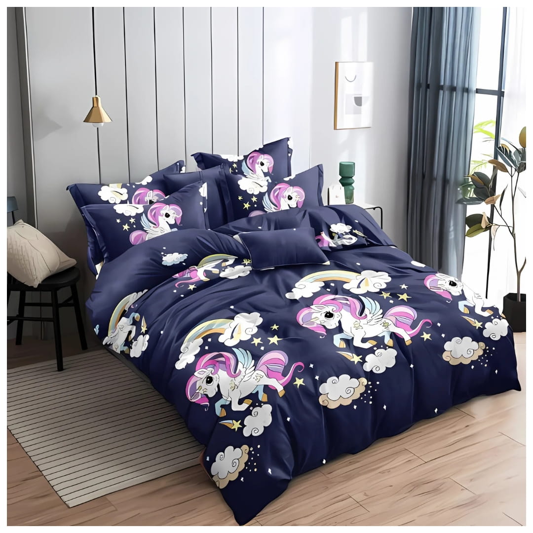 Komplet Pościeli Dziecięcej 3D 140x200 + 1x70/80 Unicorn Granatowy Satyna Bawełniana 2513