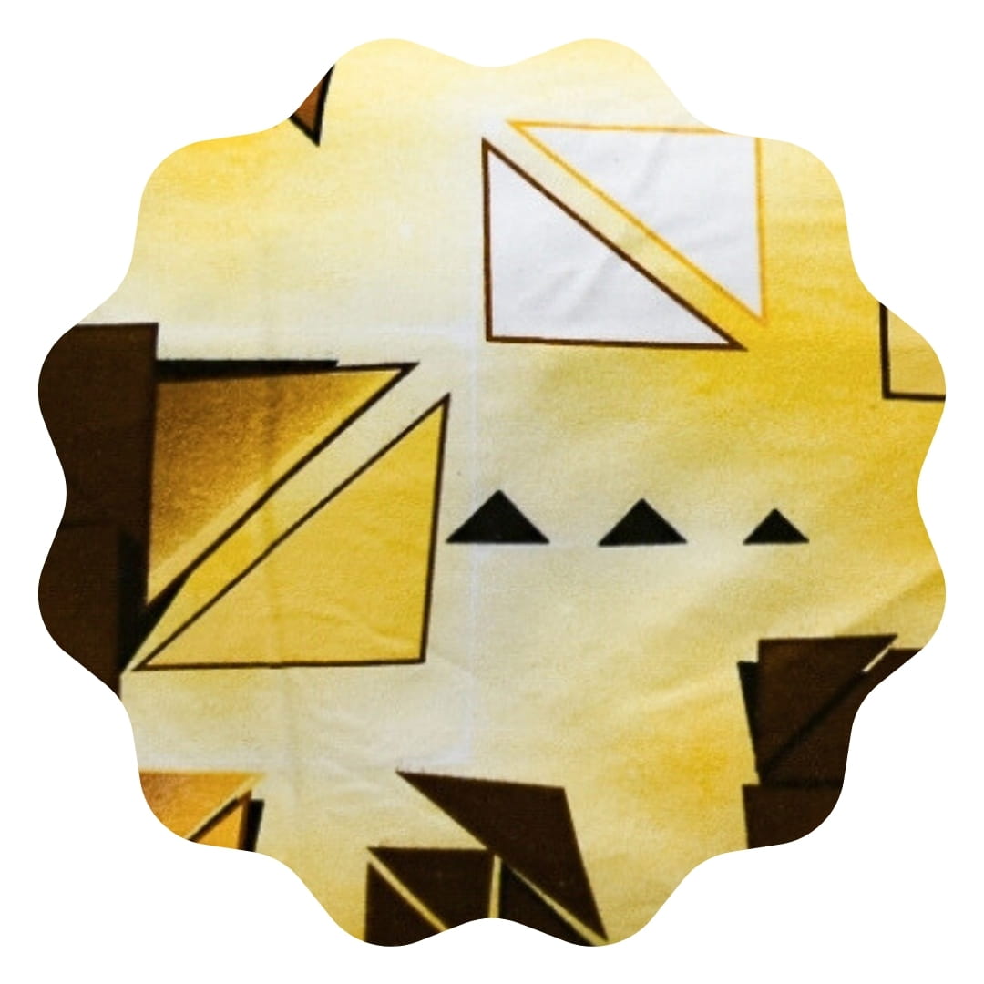 Komplet pościeli flanelowej Szkiełka Żółte w rozmiarze 140x200. Wzór pościeli „Szkiełka żółte” ma nowoczesny, geometryczny charakter. Dominującym kolorem jest ciepły odcień żółci, przypominający złoto lub miód, z delikatnymi przejściami tonalnymi, które nadają całości miękkości. Na tym tle rozmieszczone są abstrakcyjne figury geometryczne – trójkąty, romby i nieregularne wielokąty, wyglądające jak rozsypane kawałki szkła. Kształty są zróżnicowane wielkością i układem, co sprawia wrażenie lekkości i ruchu.