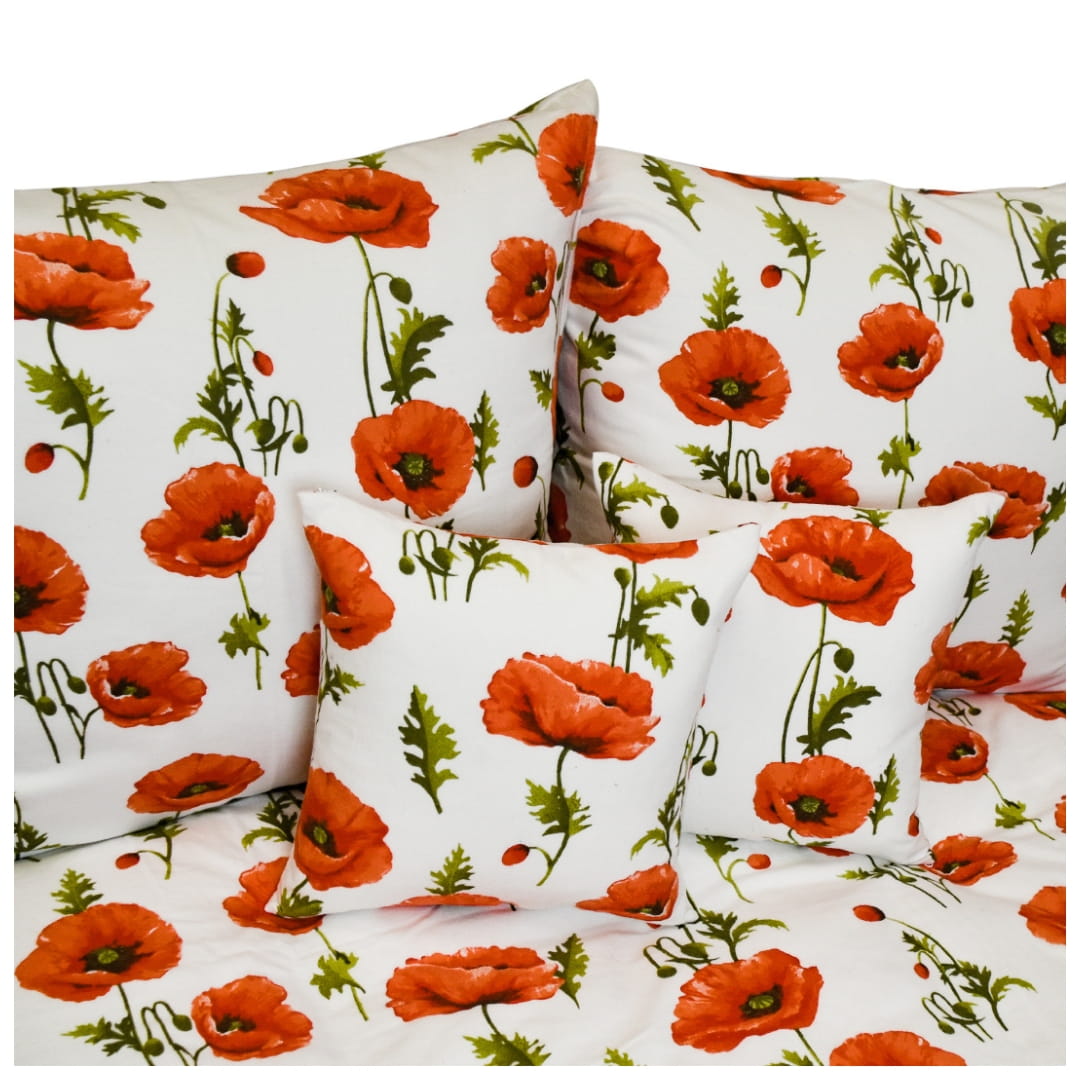 Komplet pościeli flanelowej Maki Na Białym 160x200. Wzór pościeli "Maki na białym" to klasyczna, romantyczna propozycja inspirowana naturą i kwitnącymi łąkami. Pościel zdobią duże, czerwone maki z subtelnymi, ręcznie malowanymi detalami. Wzór uzupełniają zielone łodygi i liście, które dodają lekkości i naturalnego charakteru. Śnieżnobiała baza sprawia, że kwiaty są wyjątkowo wyraziste i przyciągają wzrok. Kontrast czerwieni z bielą tworzy efekt świeżości i lekkości. To pościel, która przypomina letnie popołudnia na łące.