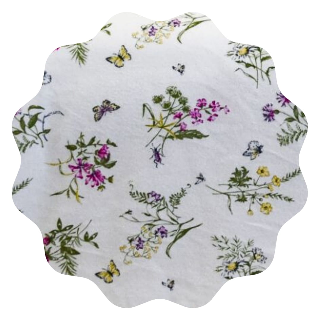 Komplet pościeli flanelowej Polne Kwiaty w rozmiarze 160x200. Pościel o nazwie "polne kwiaty" charakteryzuje się delikatnym wzorem przedstawiającym różnorodne polne kwiaty na białym tle. Wzór składa się z kolorowych kwiatów w różnych odcieniach różu, fioletu, żółci i bieli, które są rozmieszczone w sposób losowy, tworząc naturalny i sielankowy wygląd. Pośród kwiatów można dostrzec również drobne motyle, co dodaje całości lekkości i wdzięku. Zielone łodygi i liście kwiatów kontrastują z jasnym tłem, podkreślając świeżość i naturalność wzoru. Motyw polnych kwiatów wprowadza do sypialni atmosferę lata i kontaktu z naturą