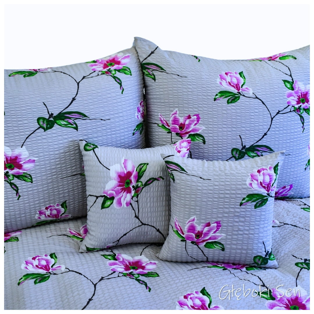 W ofercie mamy szeroki wybór wzorów, który zaspokoi oczekiwania naszych klientów. Ciekawa kolorystyka urozmaici wnętrze każdej sypialni, tym bardziej, że jest to tkanina na każdą porę roku. Komplet zapinany jest na wygodny w użytkowaniu zamek błyskawiczny.