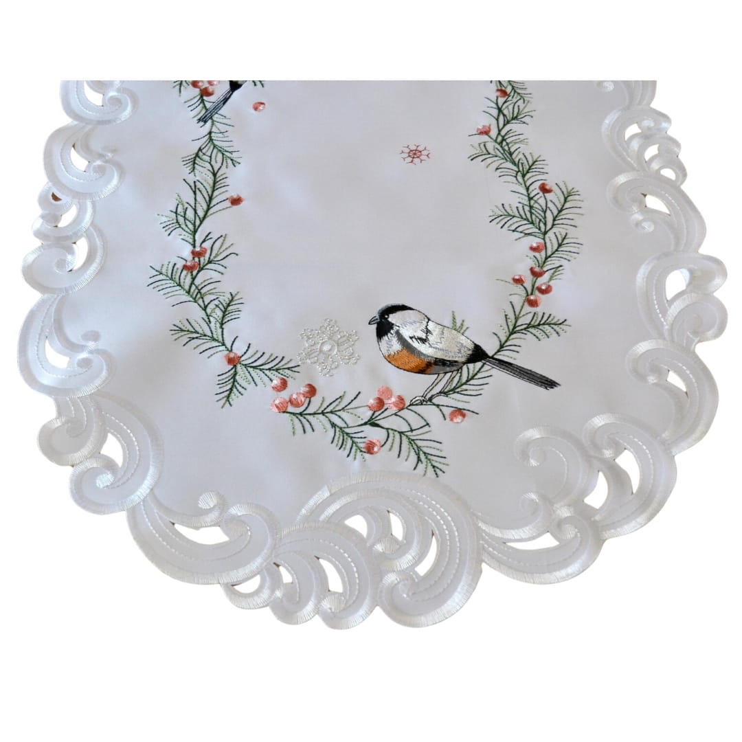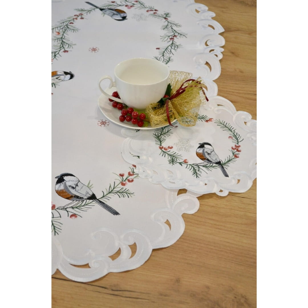 Obrus Świąteczny 60x120 Owal Haft Boże Narodzenie 170 Biel