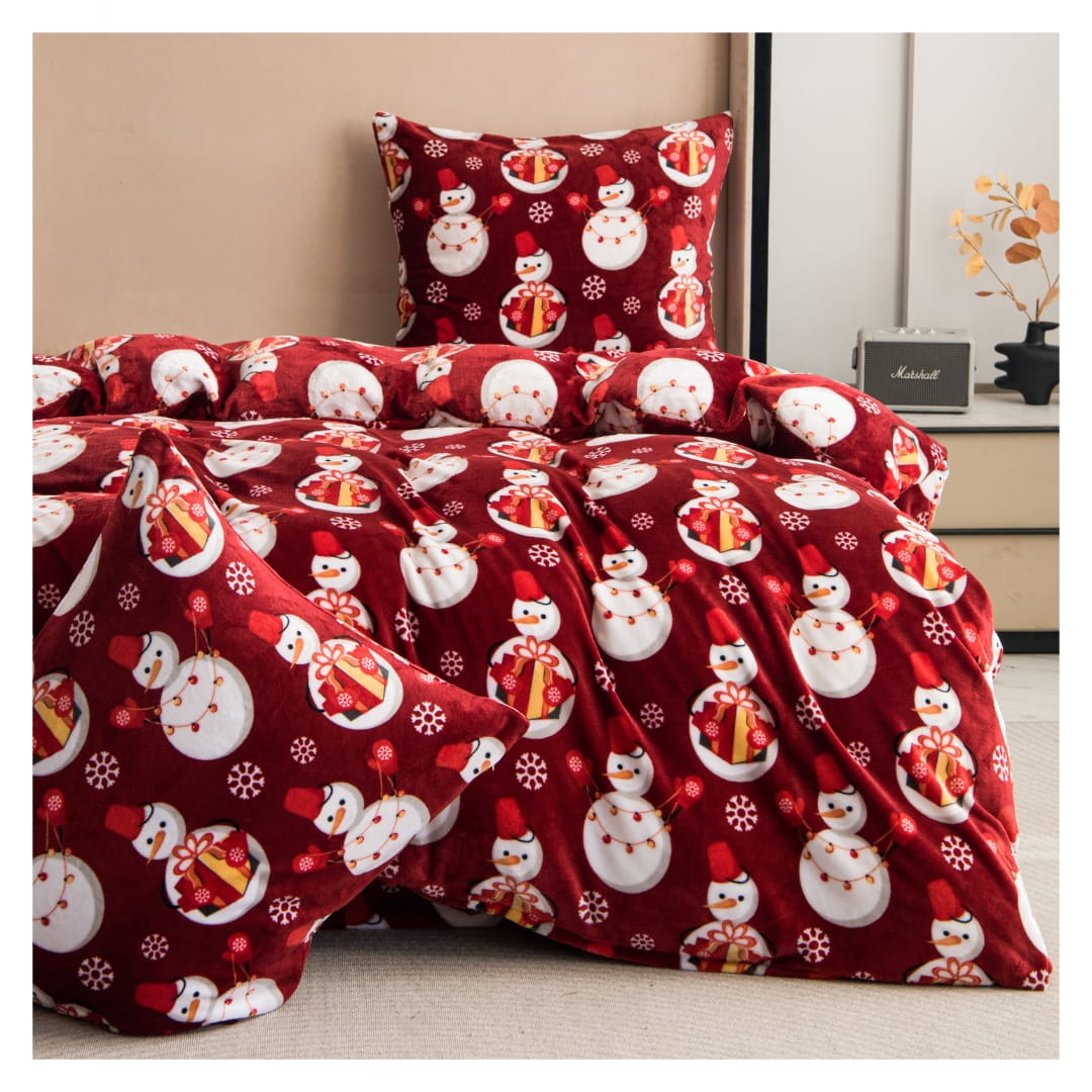 Pościel Świąteczna Mikrofibra 160x200 Bałwanki POLAR