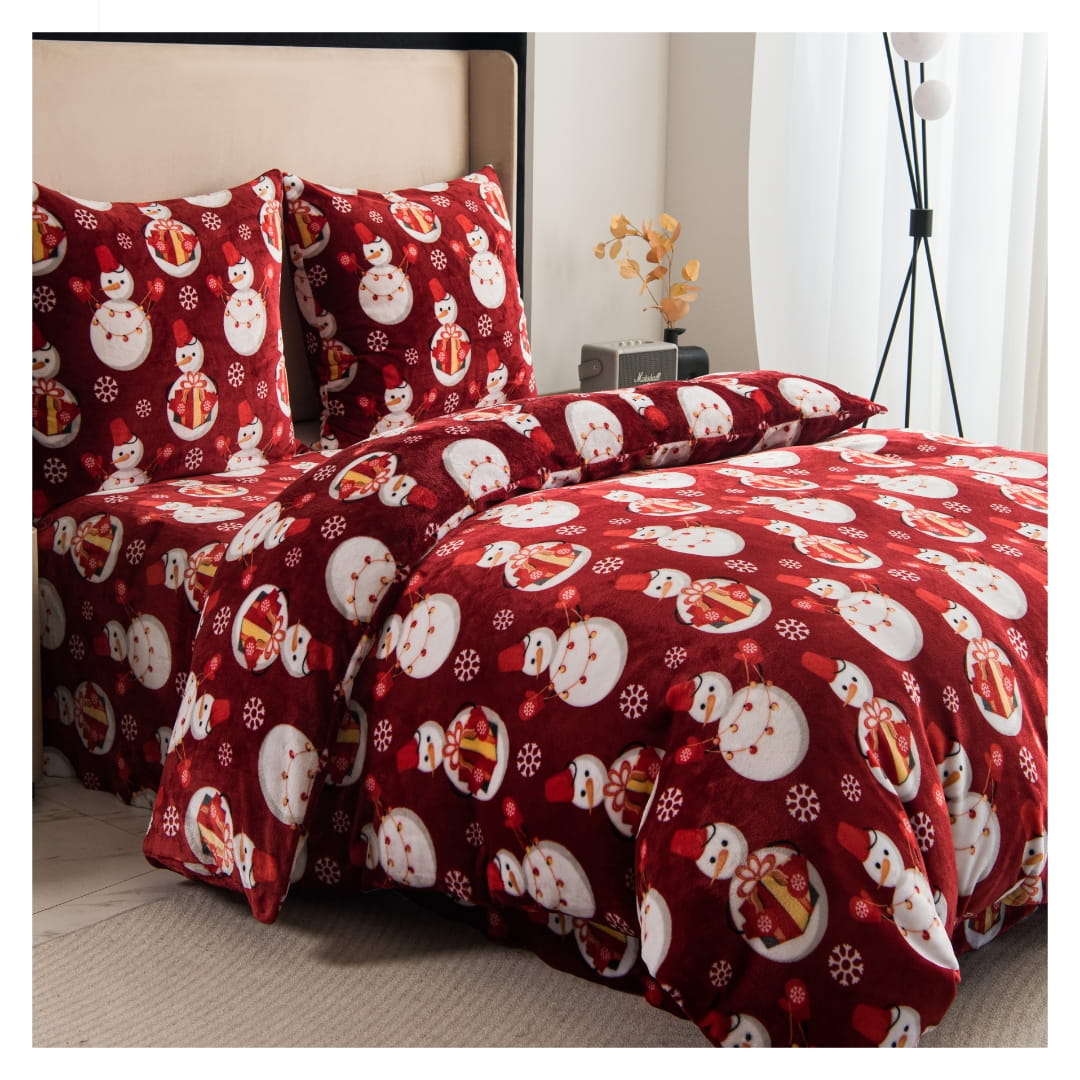 Komplet ciepłej pościeli świątecznej polarowej w rozmiarze 160x200. Pościel „Bałwanki” to doskonały wybór dla rodzin, dzieci oraz wszystkich, którzy kochają radosne, klasyczne świąteczne motywy. Tworzy ciepłą, przytulną atmosferę w sypialni i natychmiast przywołuje wspomnienia świątecznych zabaw na śniegu i lepienia bałwana. Idealna do pokoju dziecięcego lub jako element wesołej, zimowej aranżacji wnętrza.