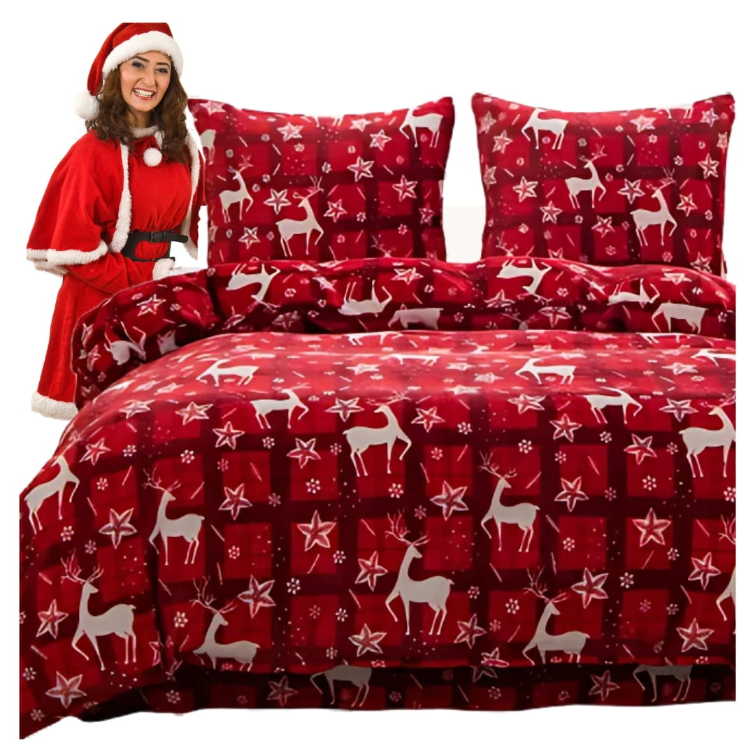 Pościel Świąteczna Mikrofibra 160x200 Renifery Krata POLAR