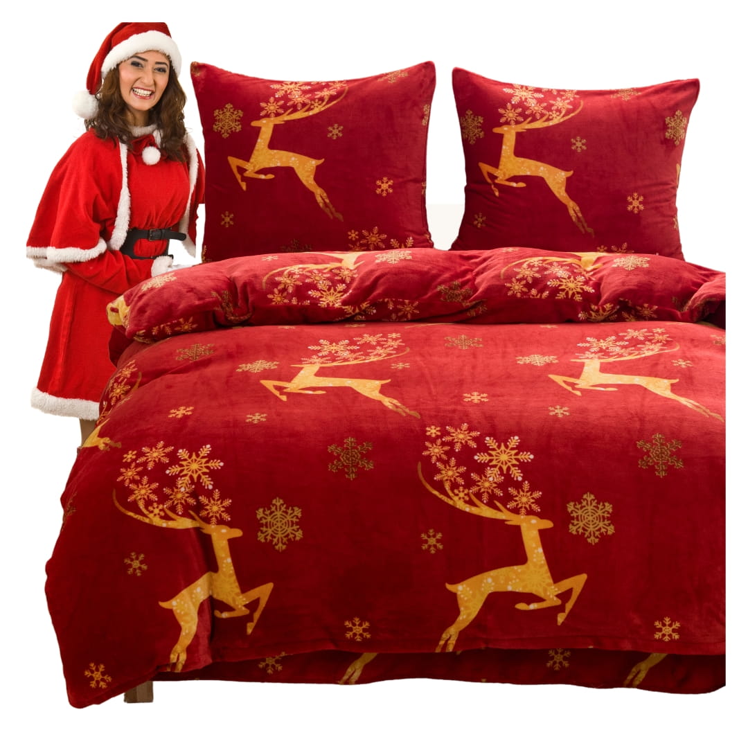 Pościel Świąteczna Mikrofibra 160x200 Złote Renifery POLAR