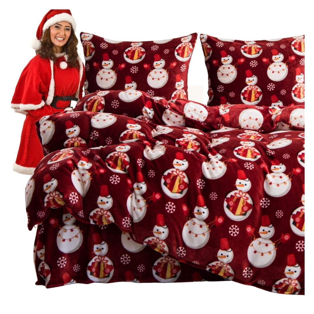 Pościel Świąteczna Mikrofibra 220x200 Bałwanki POLAR